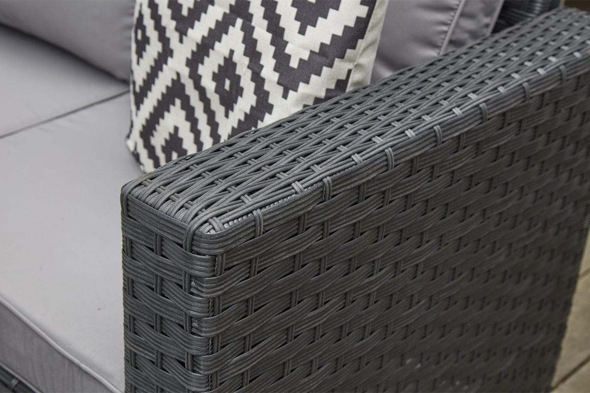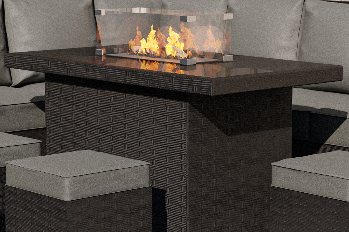Barcelona Rattan Garden Furniture 9 Seater Corner Sofa Set with Fire pit Dining Table in Black Or Grey
