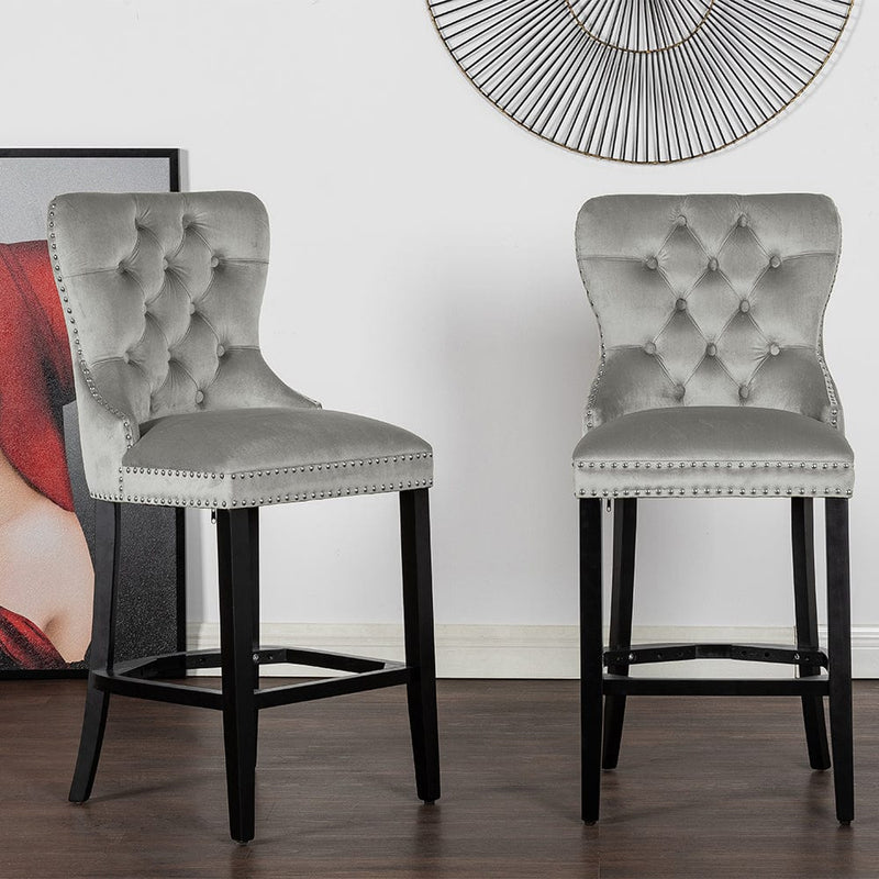 Get the feel of velvet with this set of Avers Blue Velvet Button Back Dining Chairs. The comfortable foam seat and backrest is covered in a thick velvet material that is soft to the touch. The high quality, rubber legs are finished off in a tone that blends nicely into any decor.