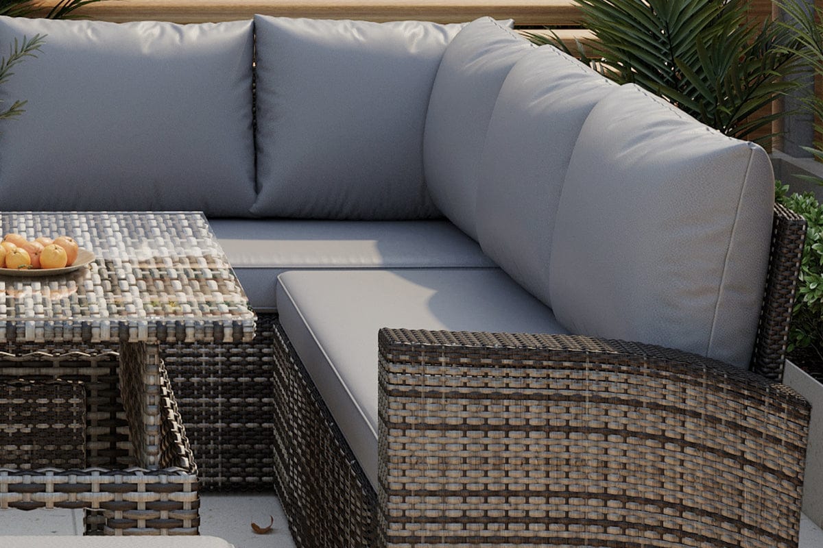 The lifting up table allows you to effortlessly bring the table to your desired height, transforming it from a regular coffee table to a convenient dining table in seconds. The rattan is expertly woven to create a seamless, smooth surface that will instantly elevate the look of your outdoor oasis. Our set includes sumptuous, deeply cushioned seating that will make you never want to leave your outdoor haven.