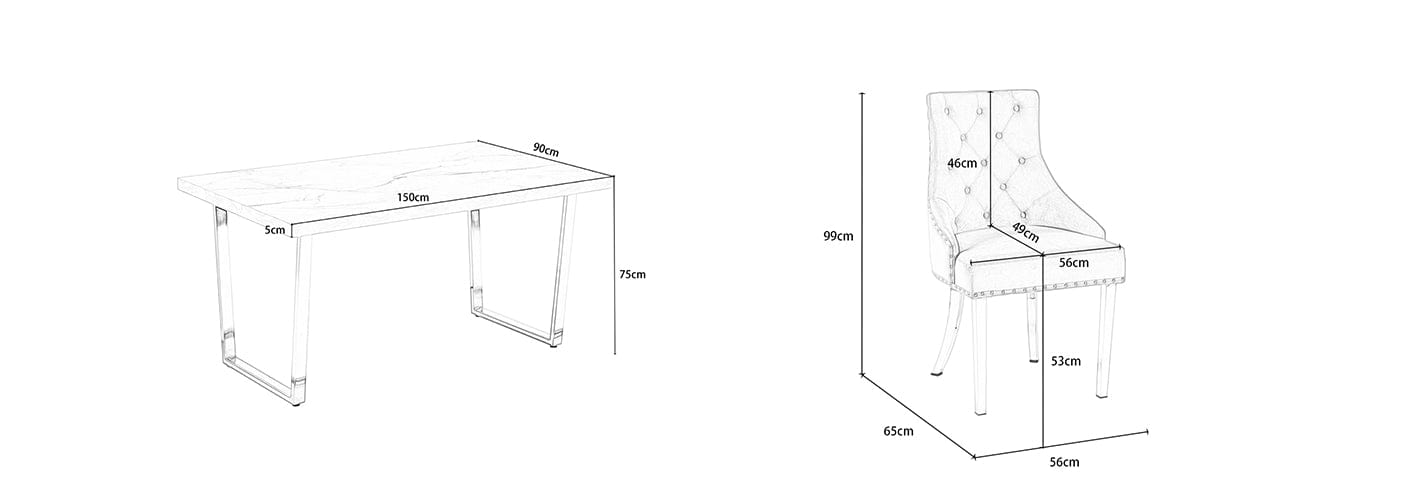 Experience the height of modern style with the Etta White Marbled Effect Trestle Dining Table Set with 6 Velvet Button Back Chairs! Crafted with sophistication and designed to stand the test of time, this stunning set is sure to brighten up your dining room.