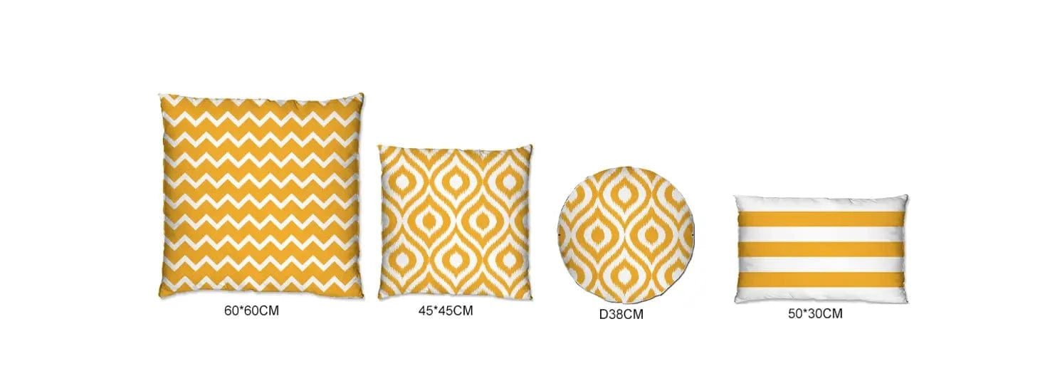 Dimensions: Cushion 1 : 60cm x 60cm ,Cushion 2: 45cm x 45cm, Cushion 3: 50cm x 30cm ,and Round Cushion: D38cm