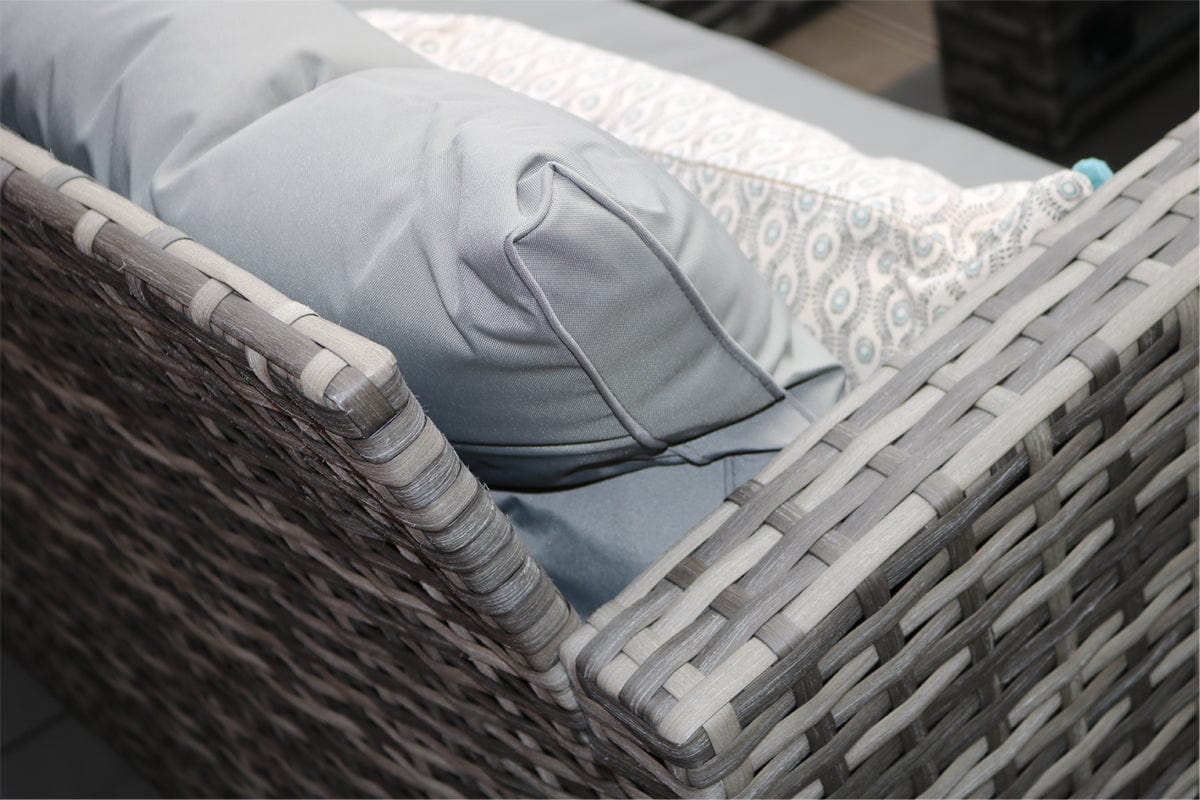 The ideal dining setting for a large family, the Rosen 9 seater rattan dining set is spacious and stunning. The set features 2 sofas and 3 ottomans. This makes it perfect for a range of family sizes. Made from a weatherproof, rust-resistant frame with a rust-resistant powder-coated finish and PE rattan weave. Each piece has been carefully designed to be lightweight and easy to maintain.