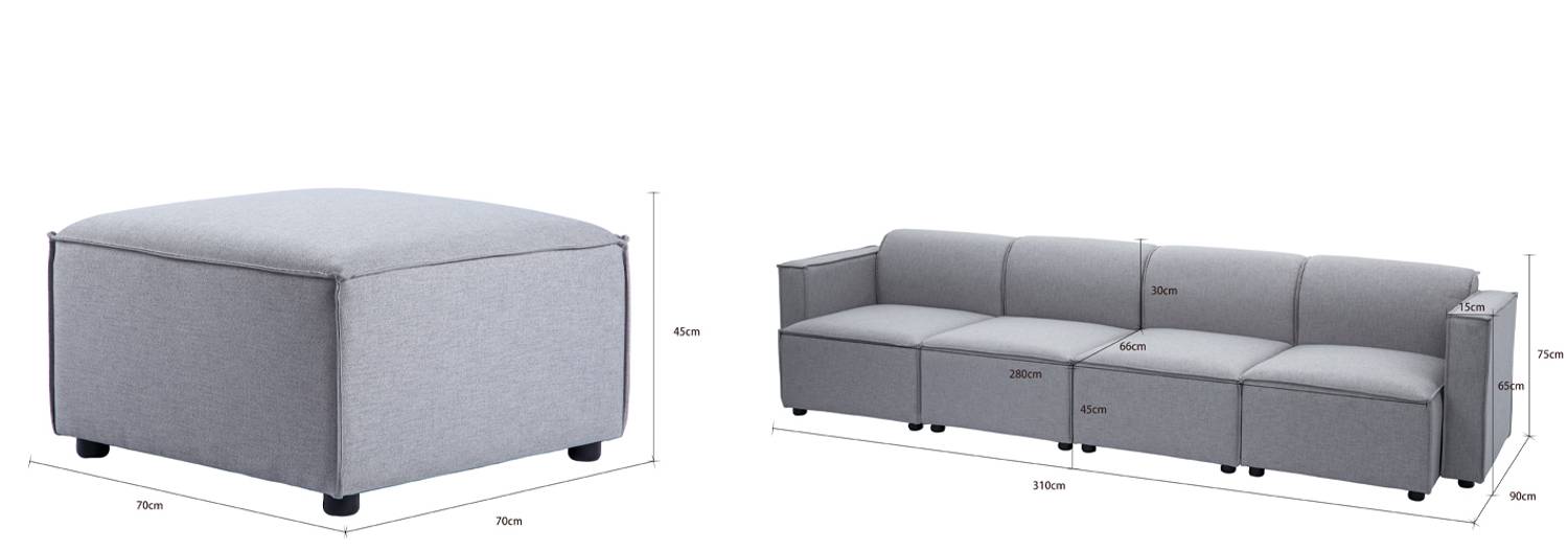 The Tessa modular 4-seater sofa with chaise is the perfect addition to any home. This stylish and comfortable sofa makes it ideal for entertaining guests or simply spending time with family. The chaise can be used as a recliner or added to the sofa to create a larger lounge area. The modular design means that the Tessa can be easily reconfigured to suit any space, making it perfect for small or large rooms. The luxurious fabric and contemporary design make the Tessa an essential piece of furniture for any home.
