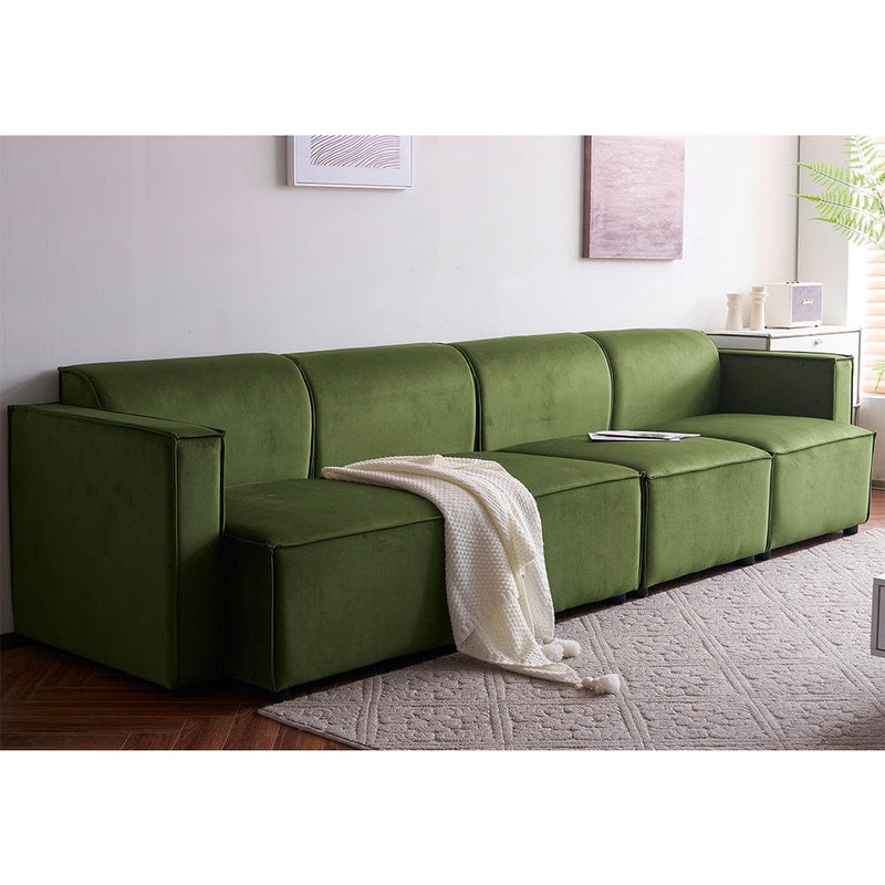 Made with the highest quality linen/velvet/boucle material, this sofa is not only durable but also incredibly soft to the touch.