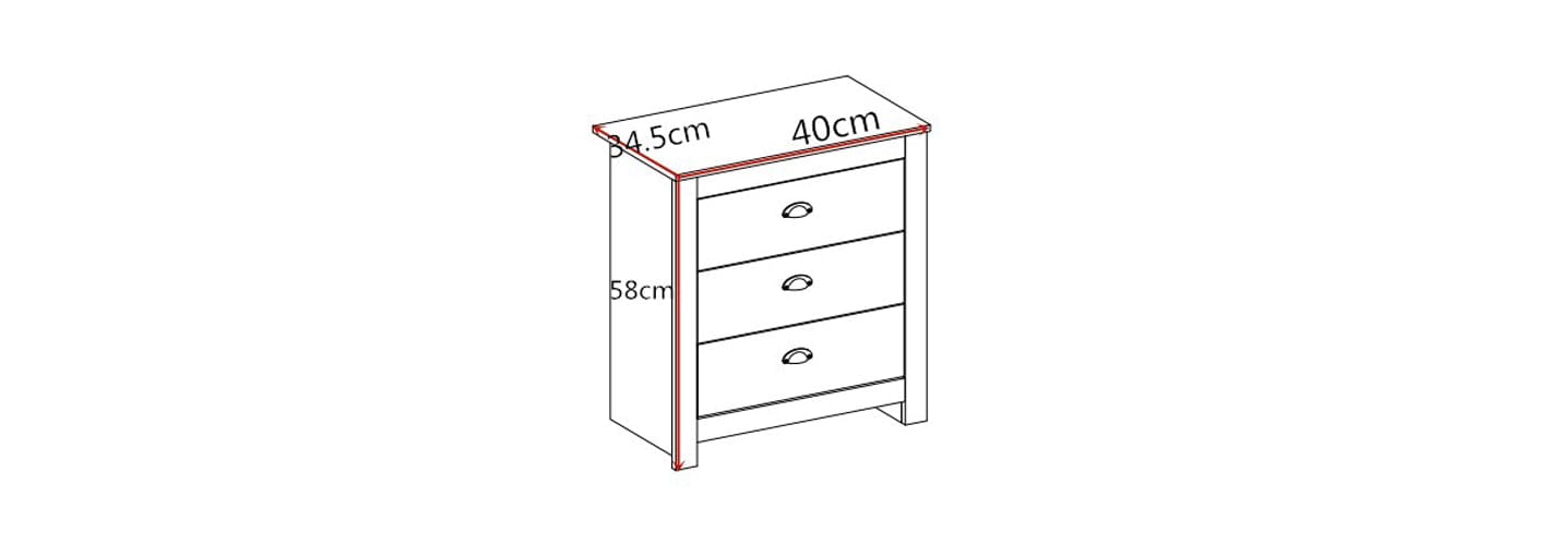 Bedside table: 40cm (W) x 35cm (D) x 58cm (H)