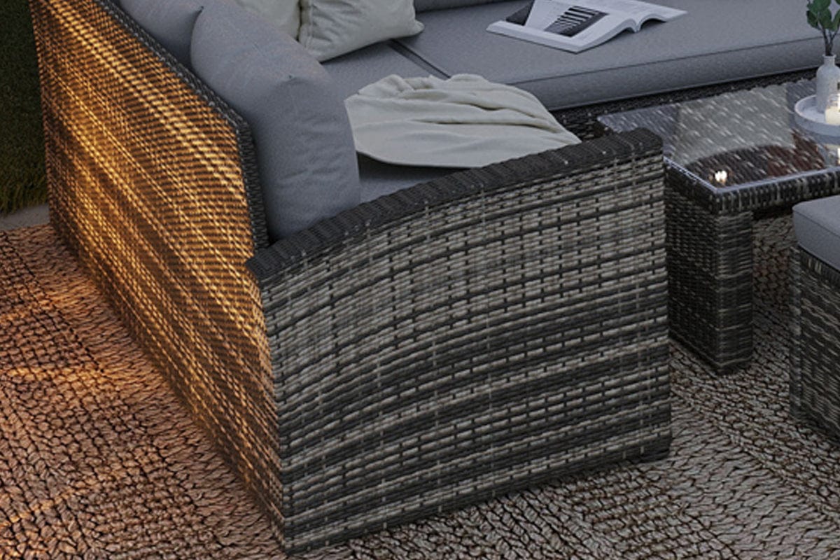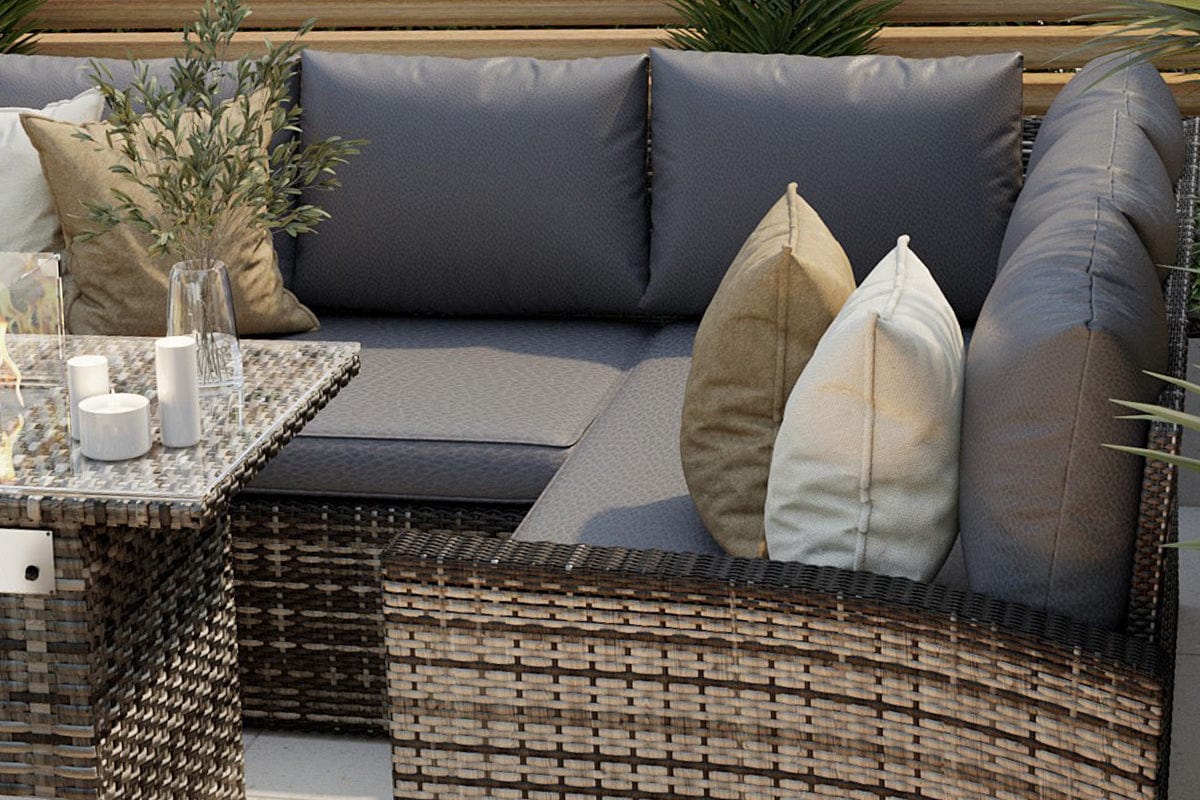 Rosen 9 Seater Rattan Garden Furniture Corner Sofa Set with Fire pit Dining Table