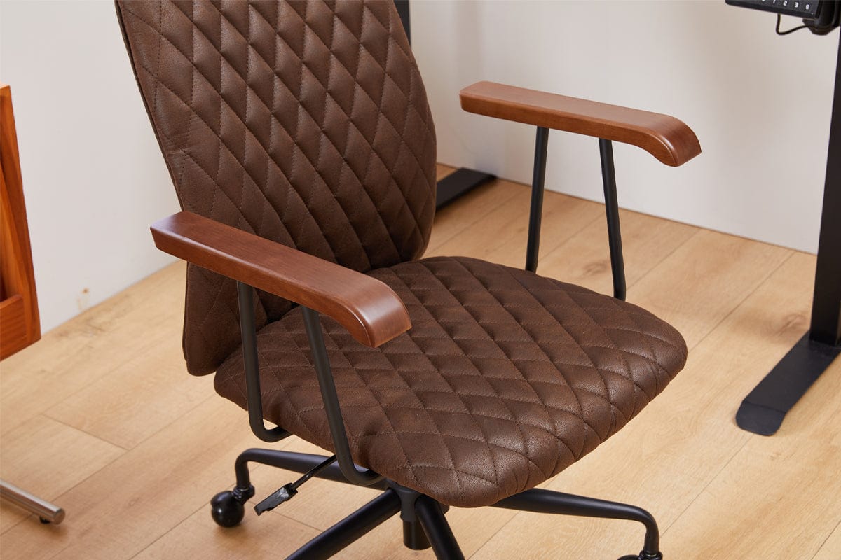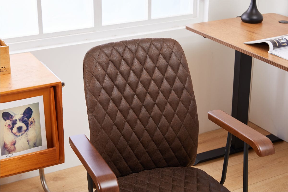 Brown Suede Fabric Swivel Office Chair Adjustable Chair with Armrest