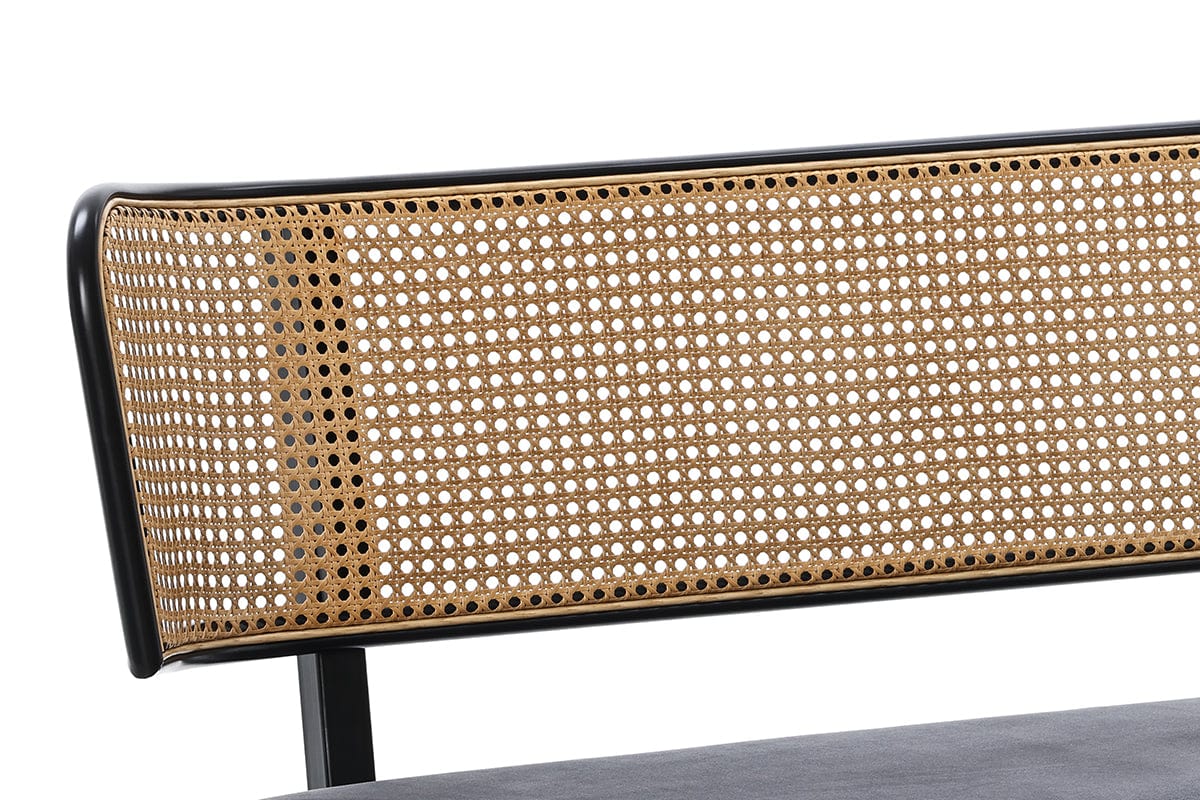 Boho Velvet Dining Bench With Rattan Backrest