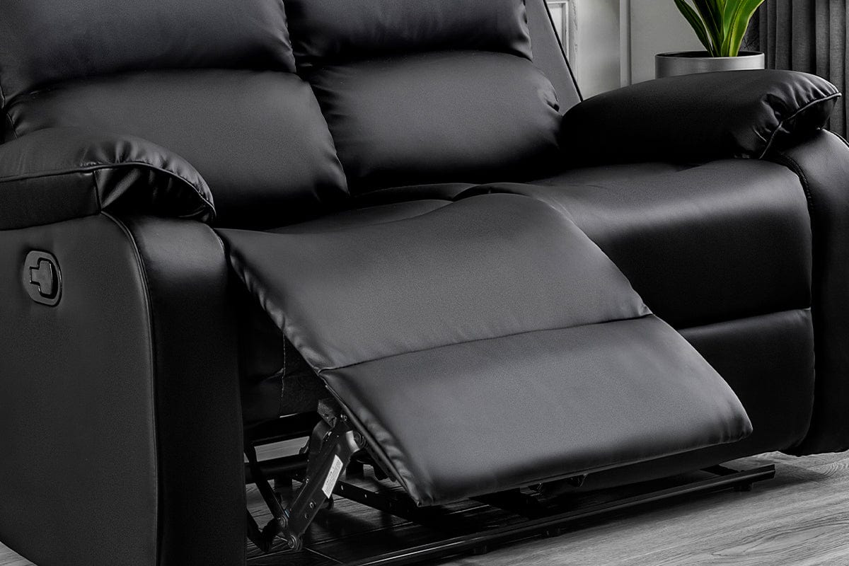 Made with premium bonded leather, this sofa set exudes a sophisticated and modern charm that will effortlessly elevate your living space.The Palermo sofa set features a thick upholstered backrest, ensuring that you sink into a cloud of pure relaxation every time you take a seat and the comfortably padded seats that guarantee an unparalleled seating experience. The wooden frame with a steel recliner mechanism allows you to effortlessly recline to your preferred position.