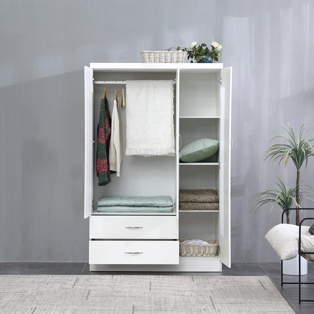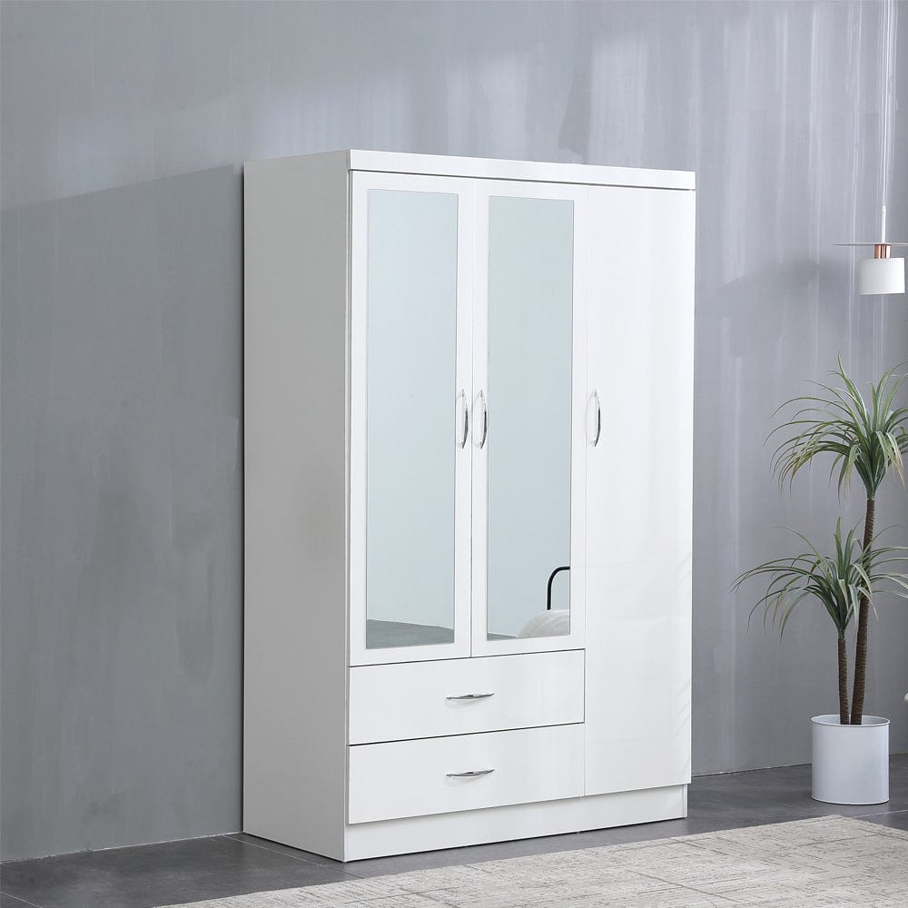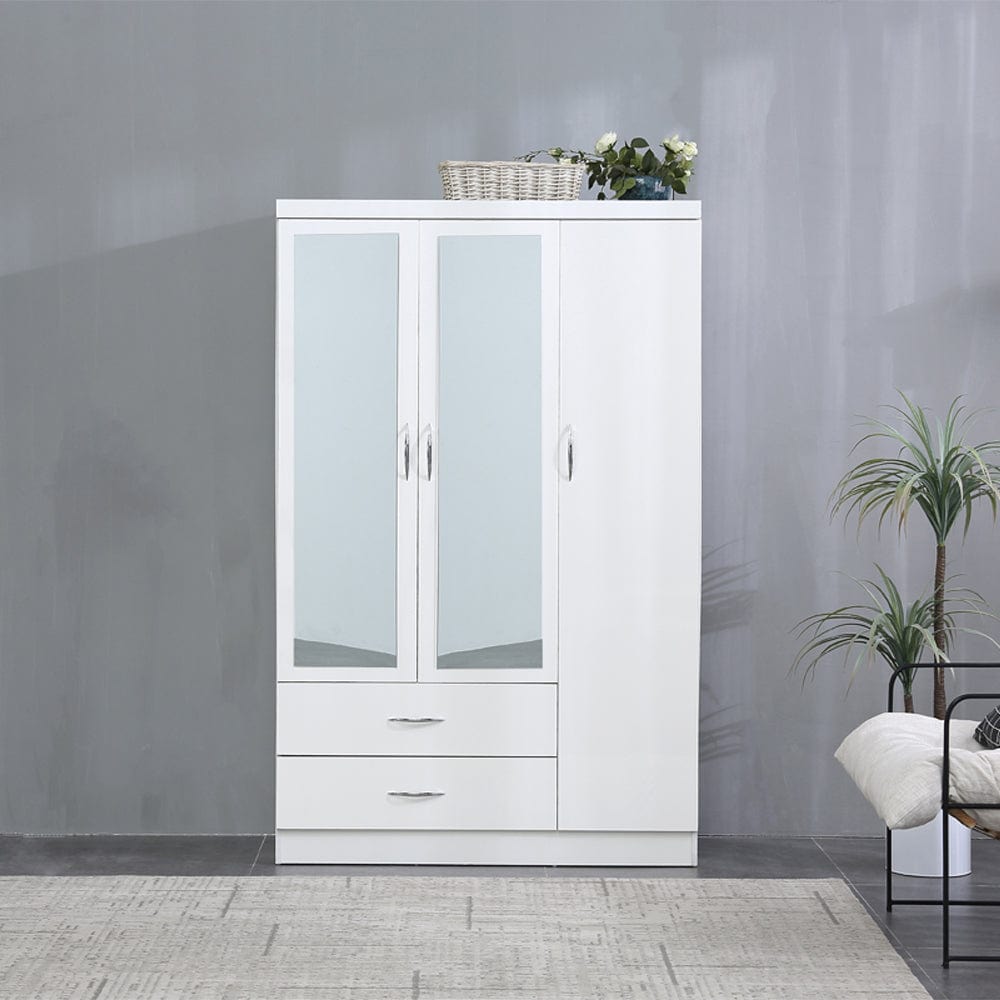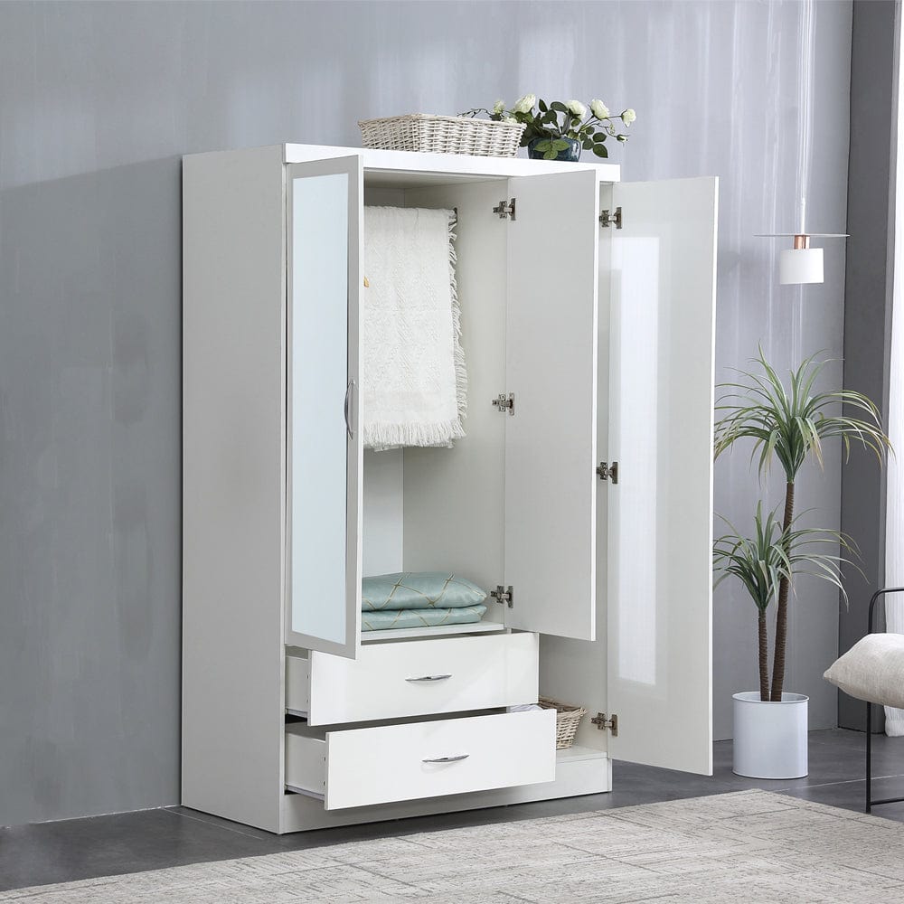 Agata 3 Door 2 Drawer Mirrored Wardrobe In White