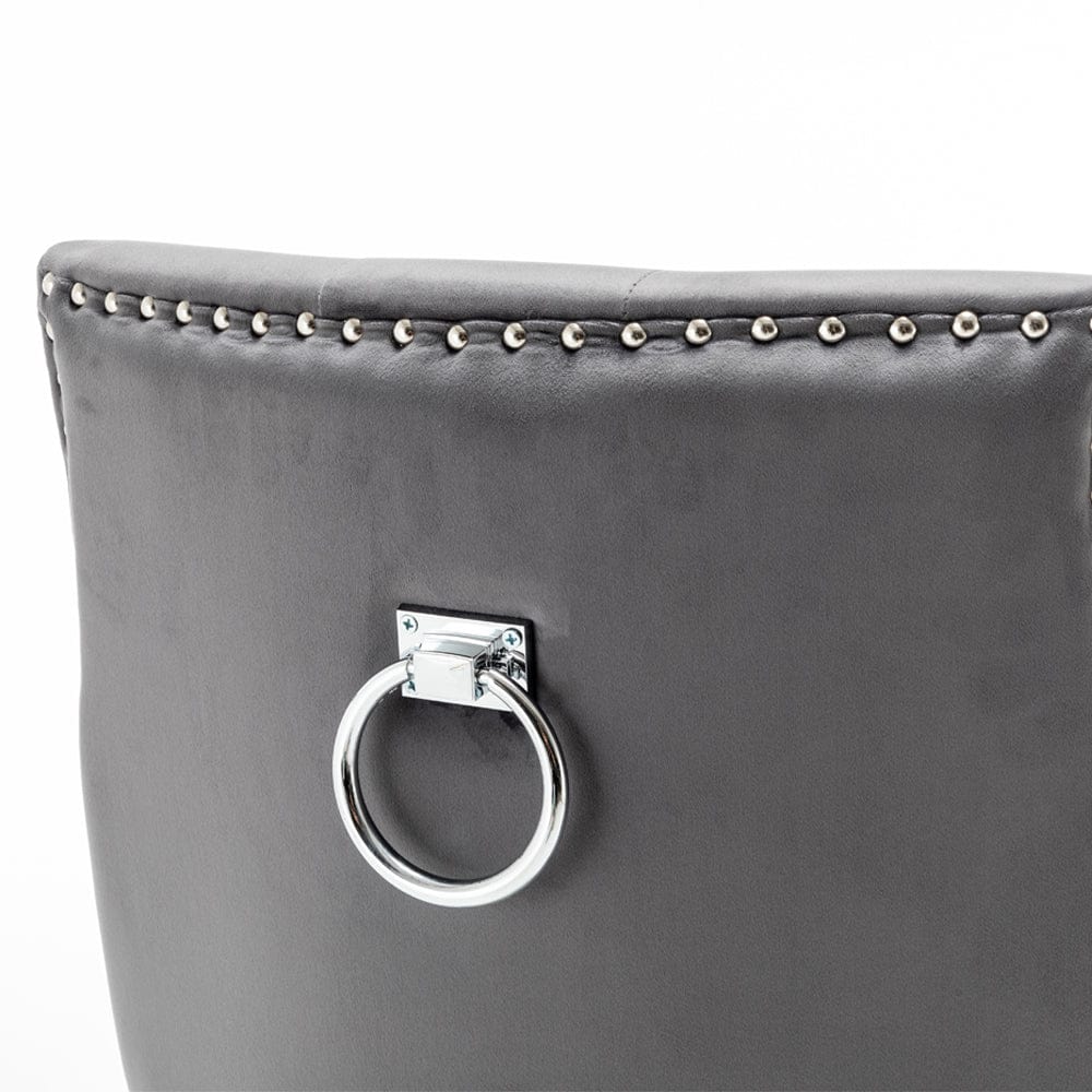 Get the feel of velvet with this set of Avers Grey Velvet Button Back Dining Chairs. The comfortable foam seat and backrest is covered in a thick velvet material that is soft to the touch. The high quality, rubber legs are finished off in a tone that blends nicely into any decor.