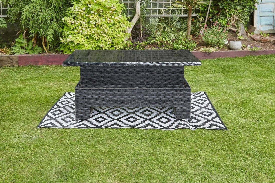 The Barcelona Rattan Garden Dining Set with rain cover is a good choice for those who want a stylish and practical outdoor furniture set. The lift-up coffee table feature is perfect for entertaining guests or enjoying a meal outdoors. The sleek design and easy-to-use functionality make this product a must-have for any event. This durable and low-maintenance set is sure to provide years of enjoyment.