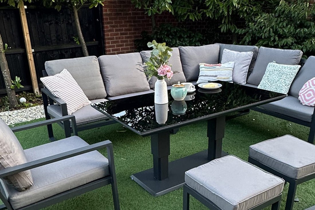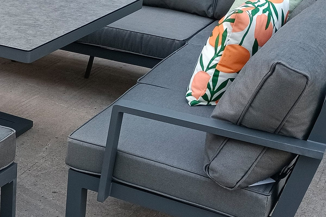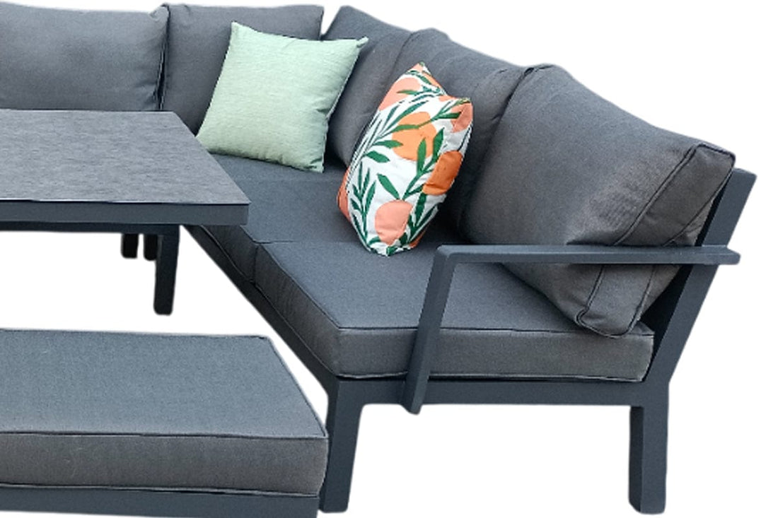 Designed with style and practicality in mind, this sleek aluminium set is perfect for hosting everything from family brunches to evening drinks with friends. The spacious corner sofa comfortably seats up to nine, providing plenty of room for everyone to stretch out and enjoy.
