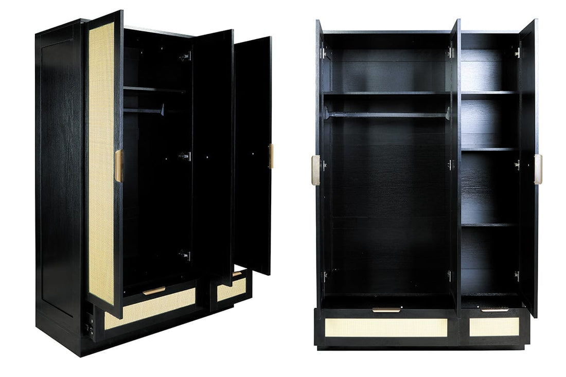 Boho 3 Door 2 Drawer Rattan Decorated Wardrobe