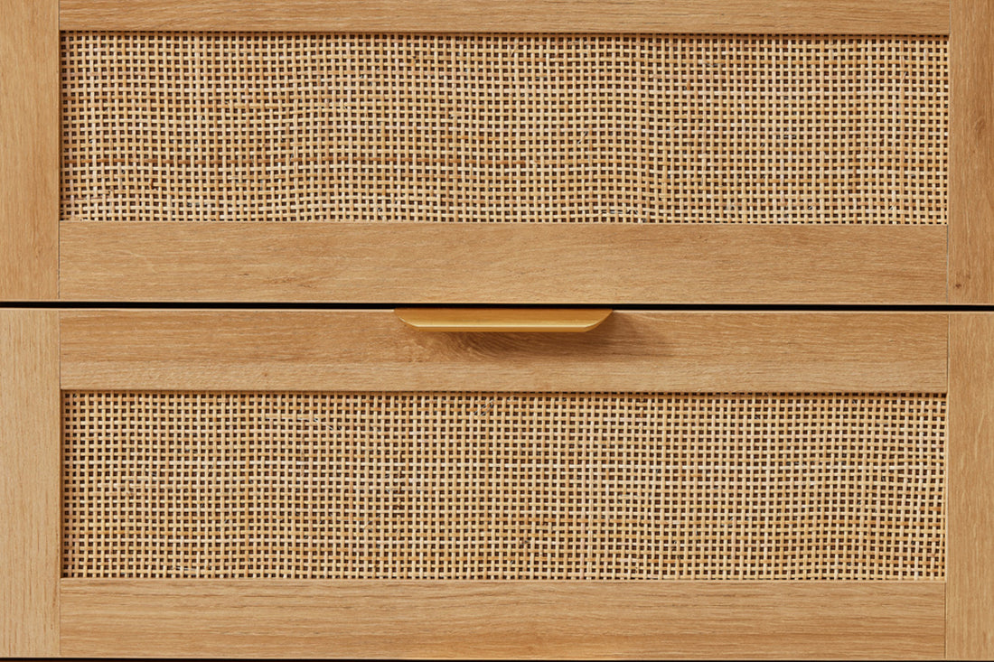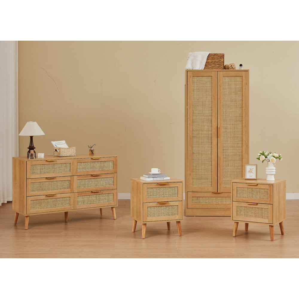 Boho 4-Piece Rattan Bedroom Set with 2 Door Wardrobe and 6-Drawer Chest and Bedside Cabinets