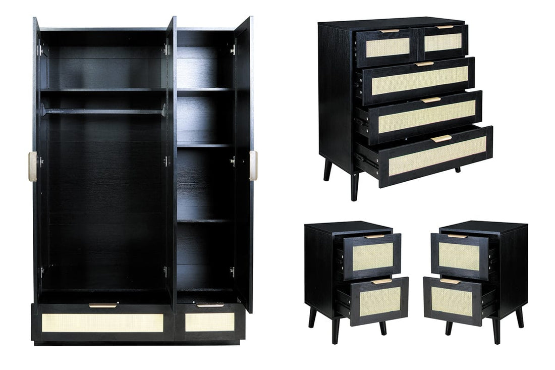 Boho 4 Piece Rattan Bedroom Set With Wardrobe And Cabinet
