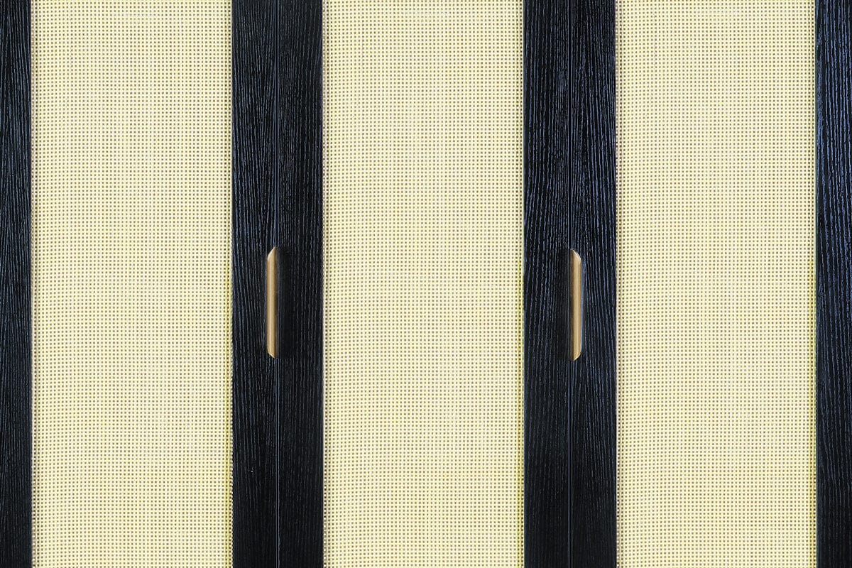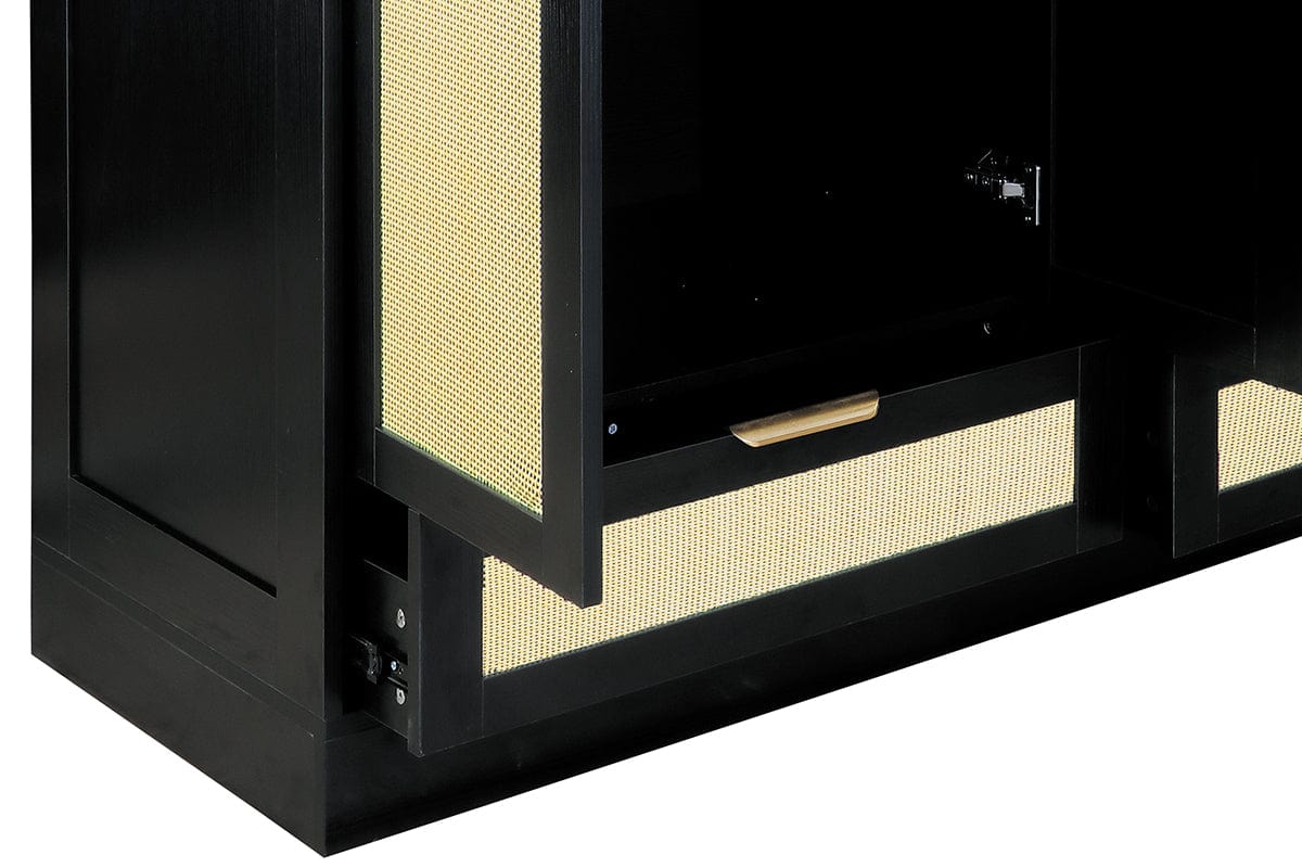 Woven rattan door and drawer contrast with black particle board bring a cozy, natural texture to your space, making your bedroom the ultimate retreat.
