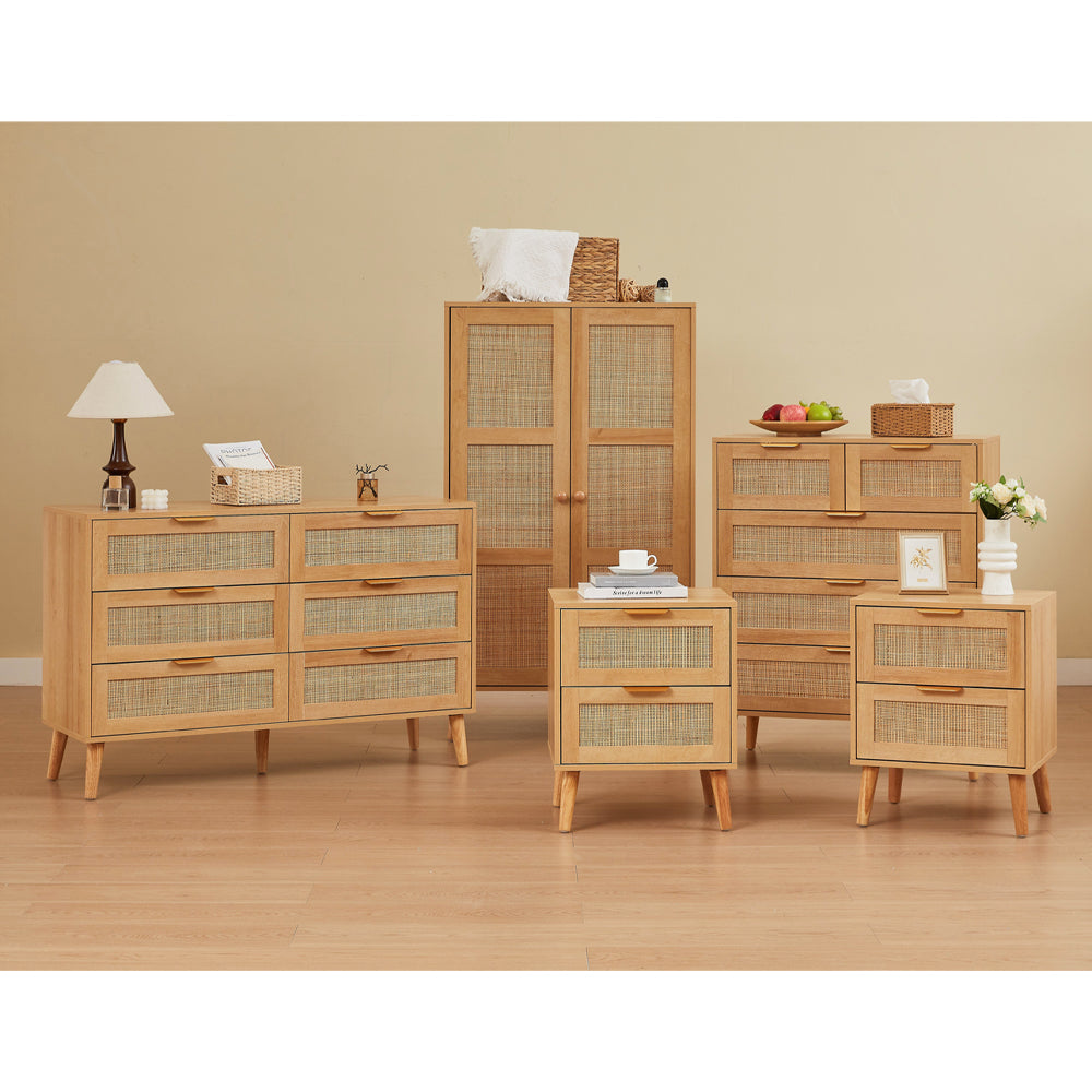 Boho 5‑Piece Rattan Bedroom Wardrobe Set with Chests and Bedside Cabinets