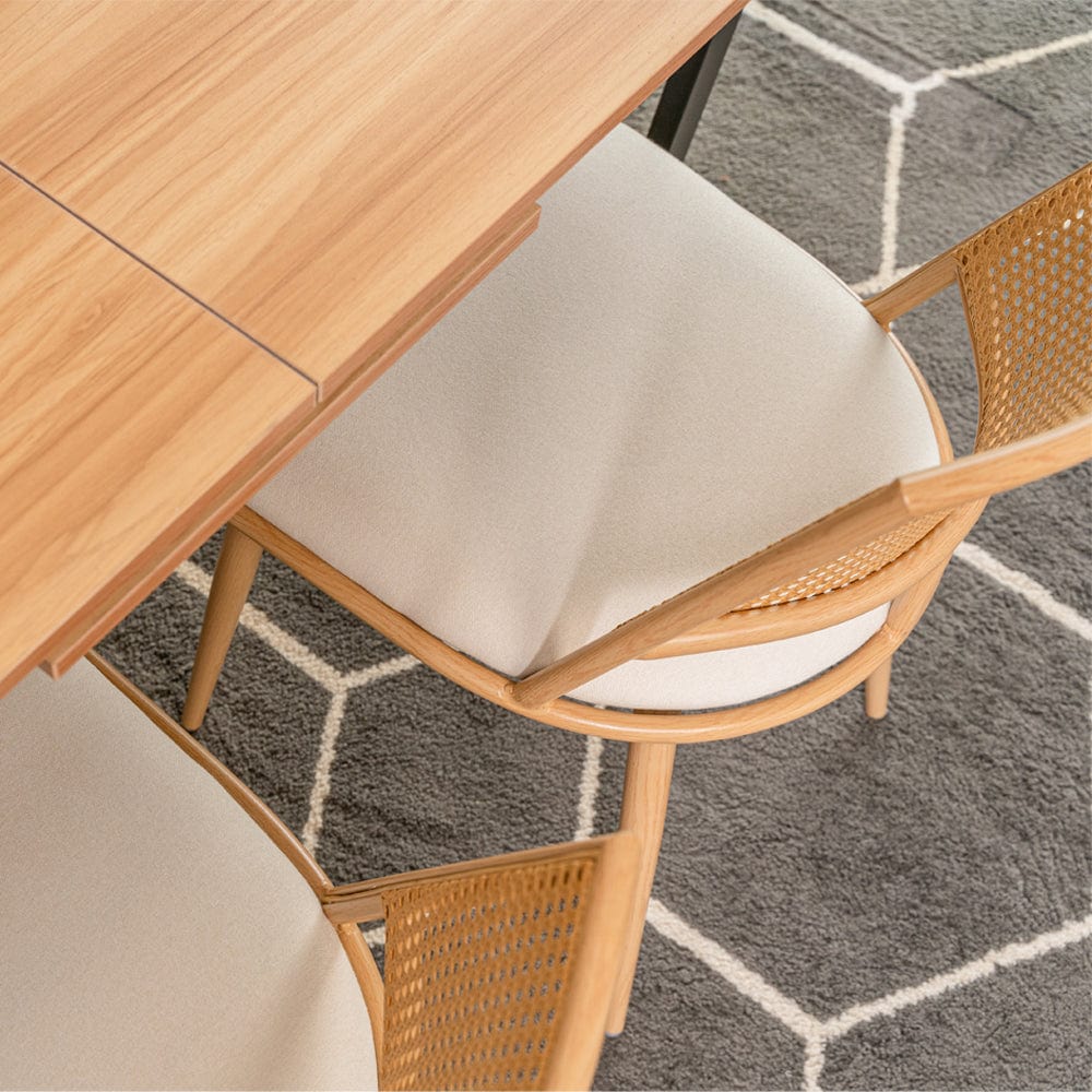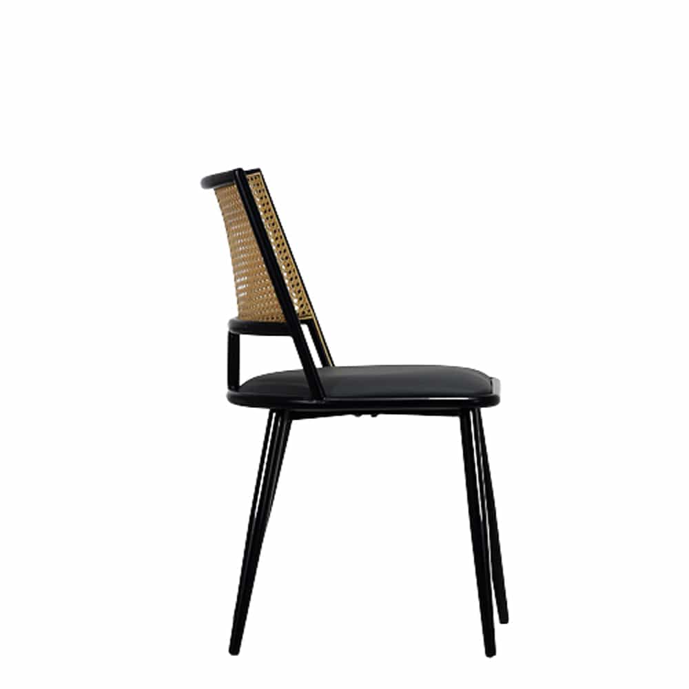 Set of 2 Boho Rattan Dining Chairs With PU Or Boucle Upholstery