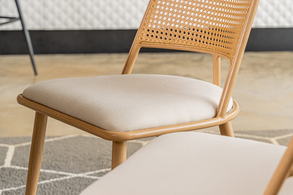 Set of 2 Boho Rattan Dining Chairs With PU Or Boucle Upholstery