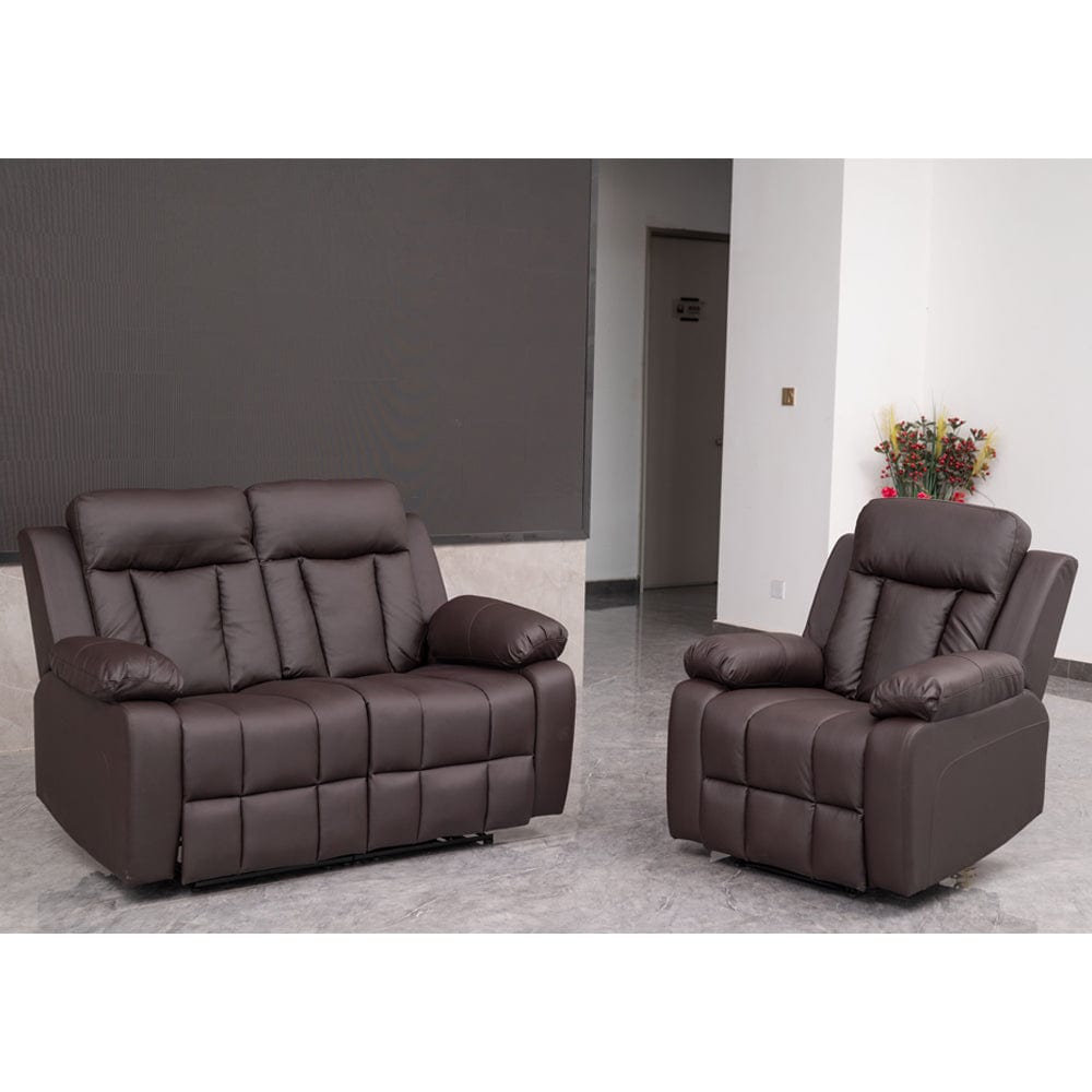 Brown PU Leather Pushback Recliner 2 Seater Sofa/3 Seater Sofa / Armchair Set