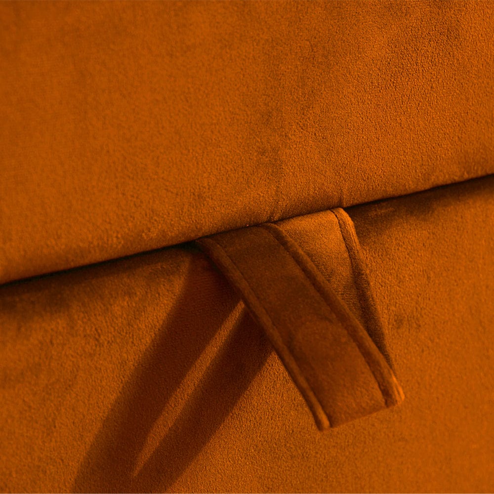 Destin Reversible Orange Velvet Corner Sofa With Storage Chaise and Ottoman Bench