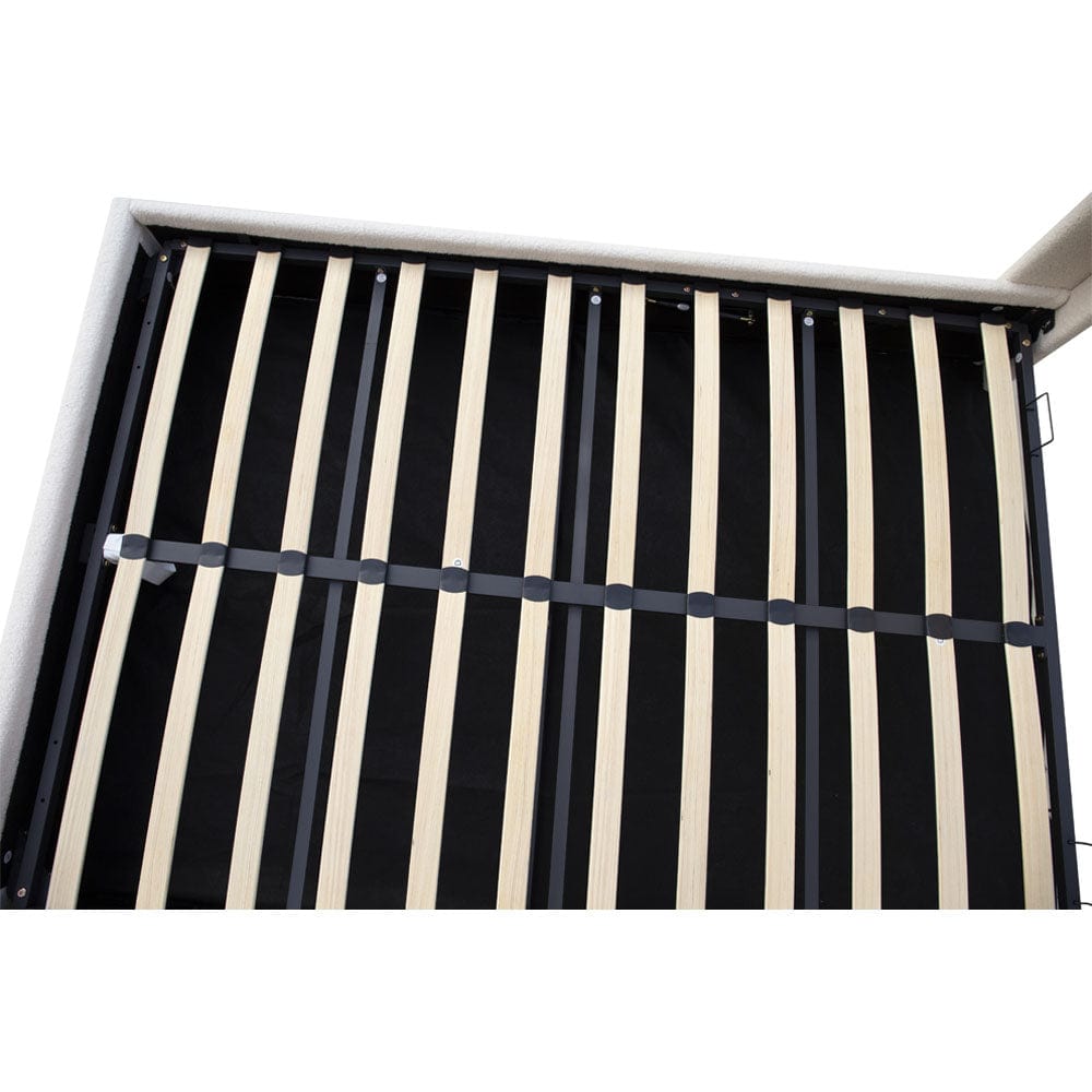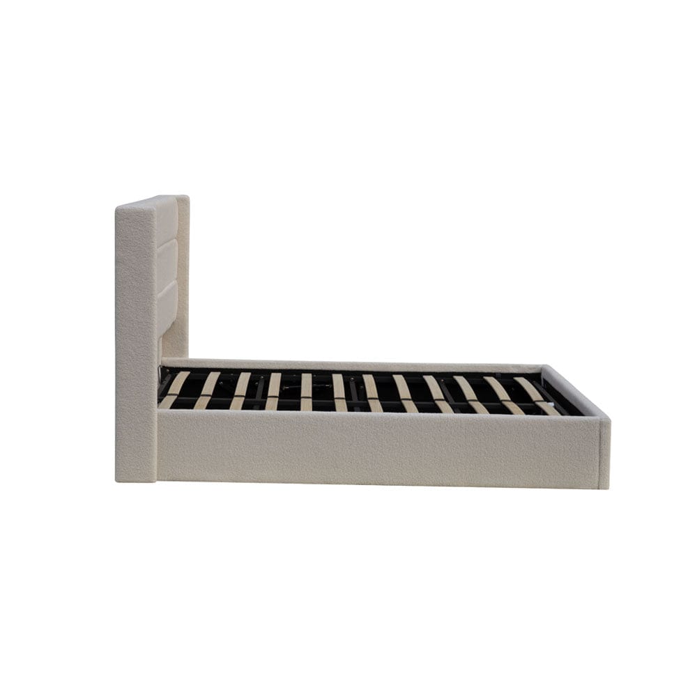 Transform your sleeping space into a haven of comfort and style with the Ease Ottoman Storage Bed Frame in beige boucle teddy fleece. Available in double or king sizes, this bed frame effortlessly marries elegance with practicality. Upholstered in irresistibly soft boucle fabric, it adds a layer of warmth and sophistication to your bedroom. A pneumatic lift-up mechanism that reveals ample storage beneath the mattress. Perfect for keeping bedding, seasonal clothes, or anything else neatly tucked away and easy to access. With its reinforced frame and sturdy construction, this bed ensures restful sleep while seamlessly blending functionality and modern design.