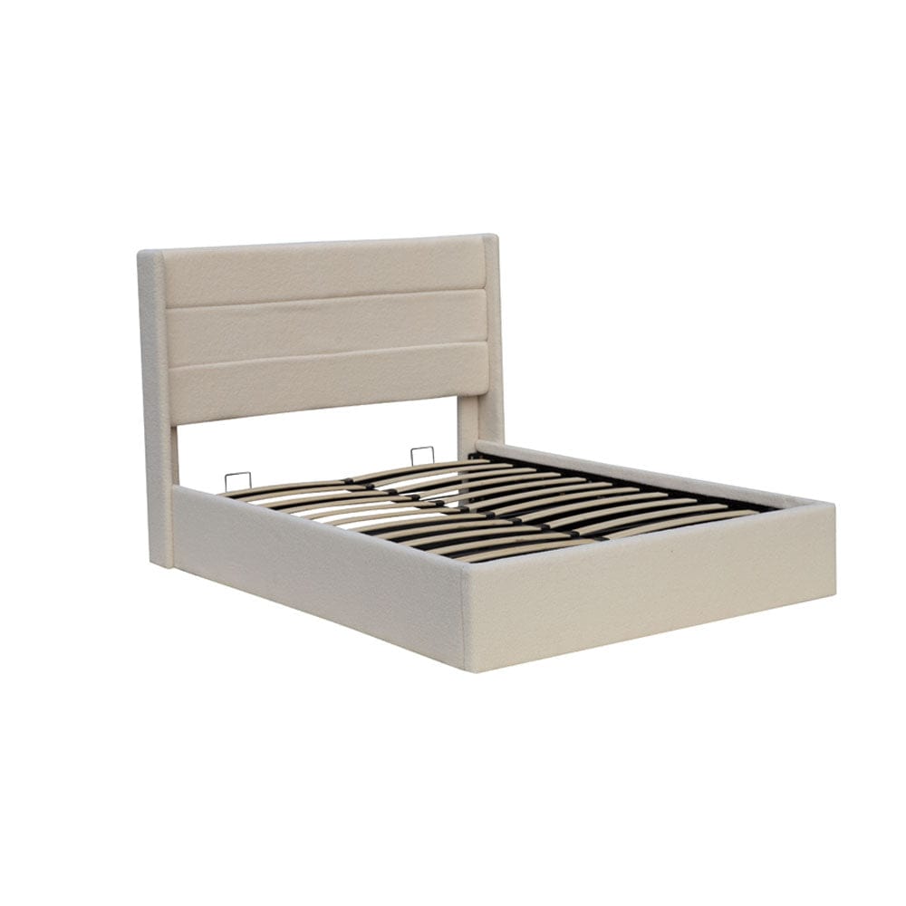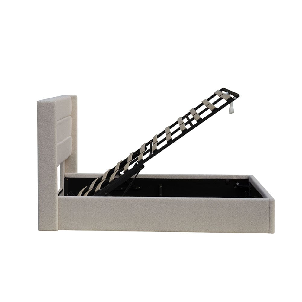 Ease Ottoman Storage Beige Boucle Teddy Fleece Pneumatic Lift Up Bed Frame Double or King Bed