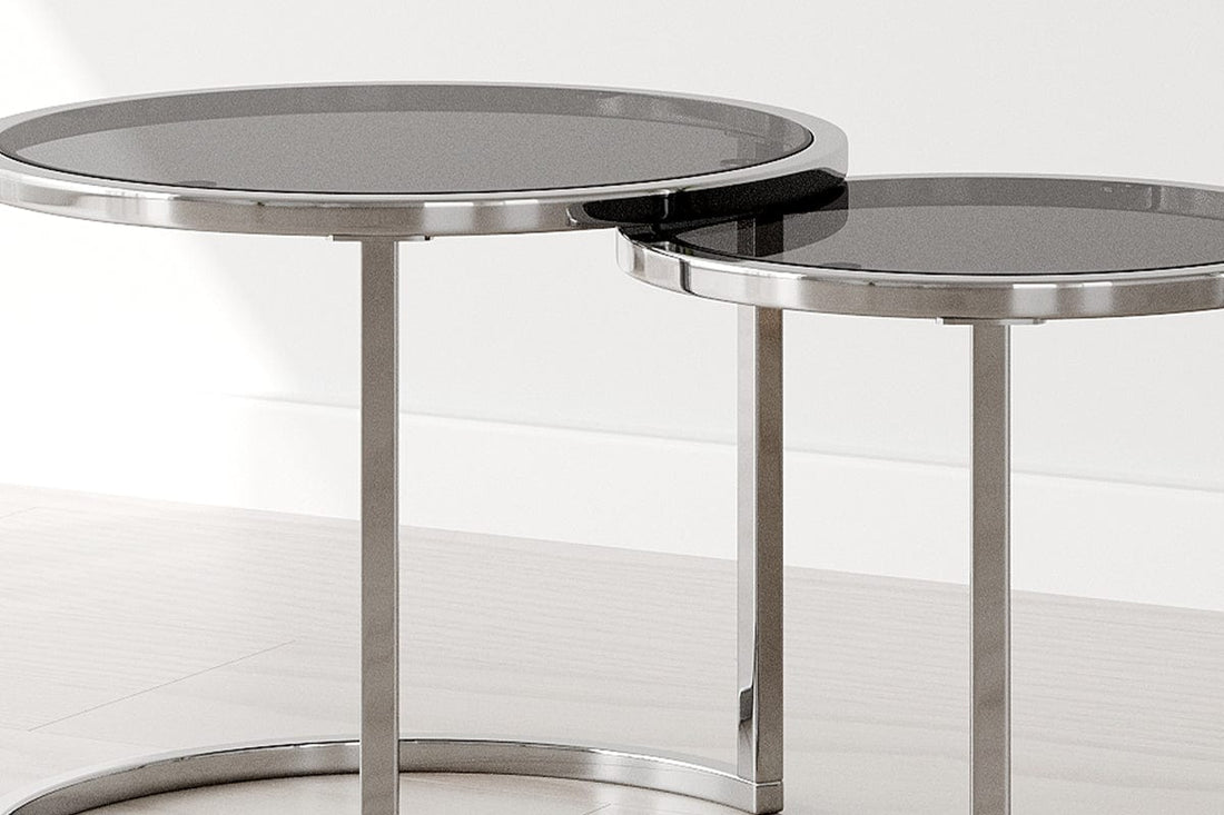 Etta Set Of 2 Frame Nesting Round End Coffee Table with Glass Top