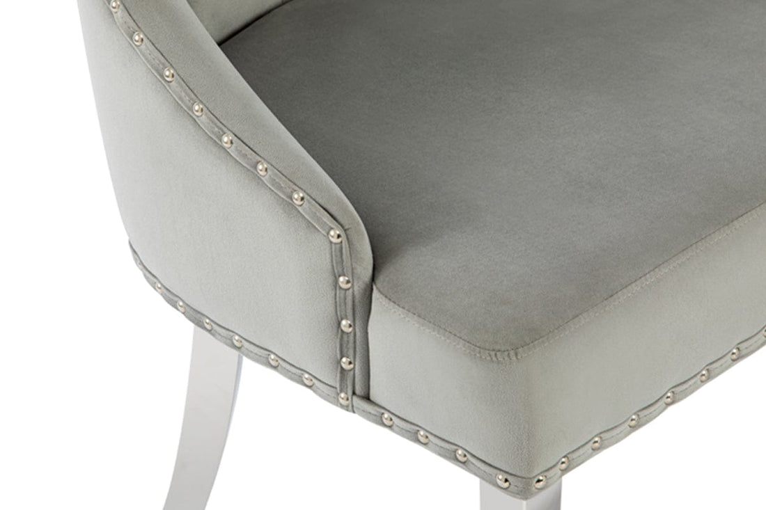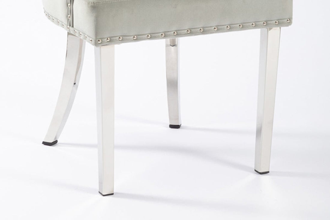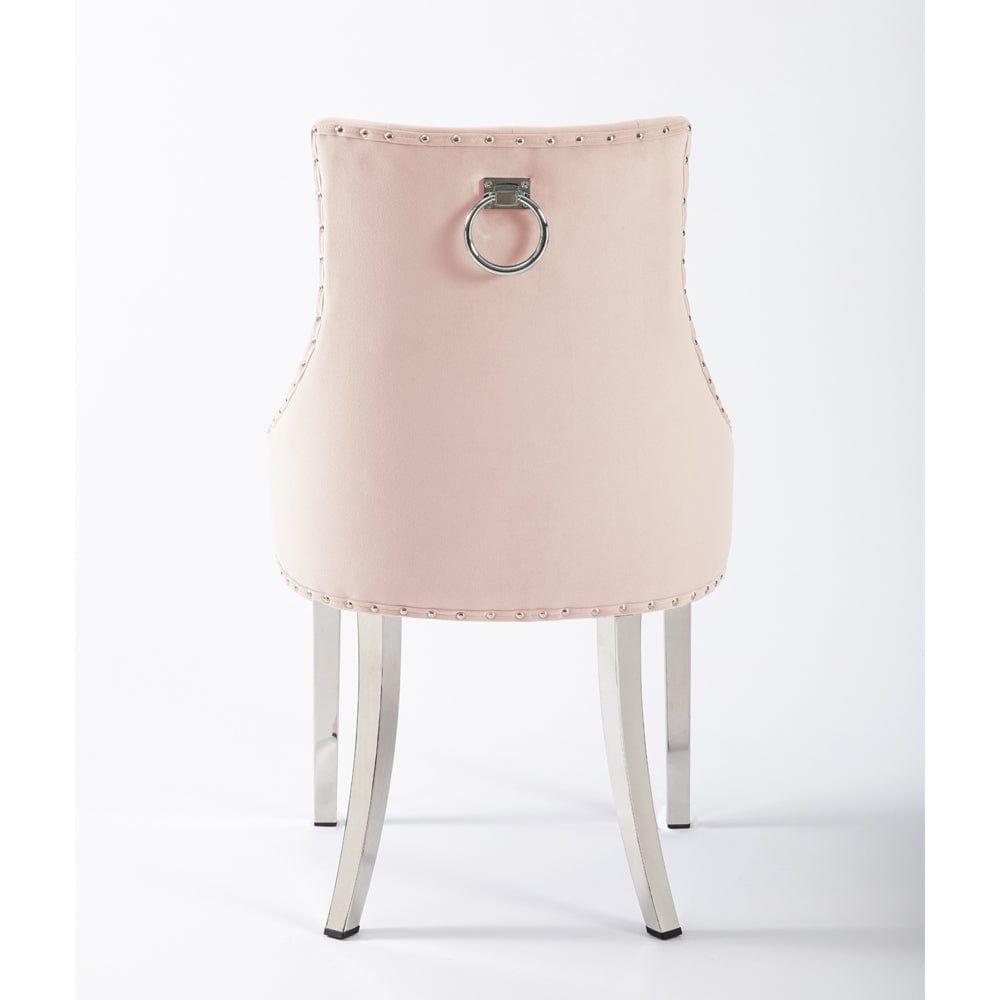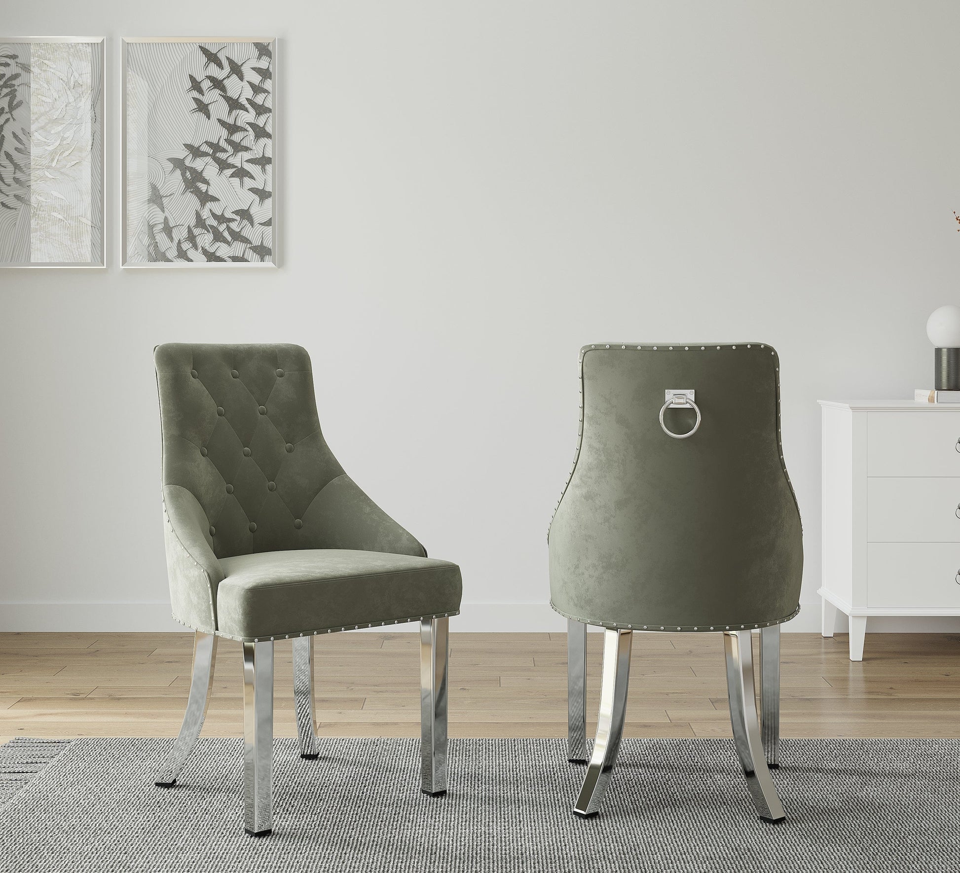 - The six included velvet button back chairs are available in three colors – grey, light grey, and pink – so you can choose which best fits your style and taste.