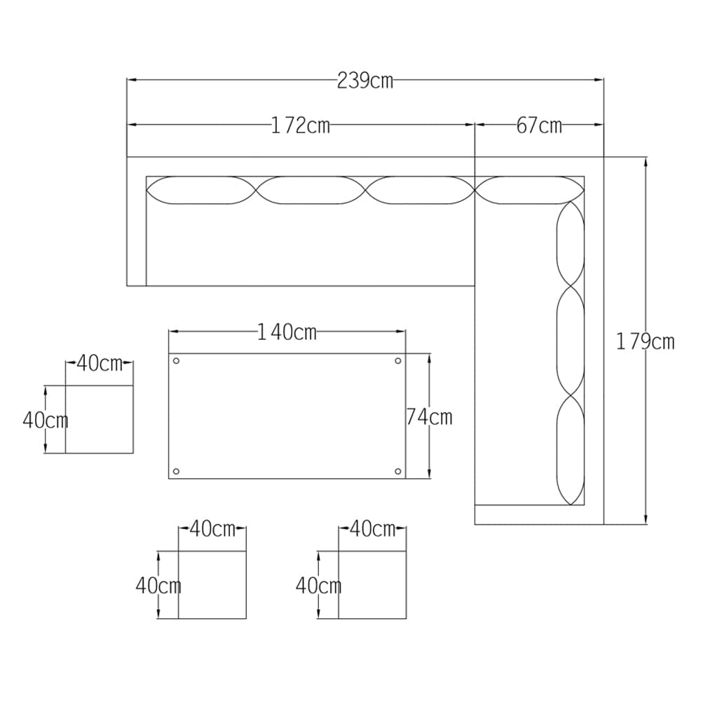 1x Three Seater Corner : 172x67x74cm
