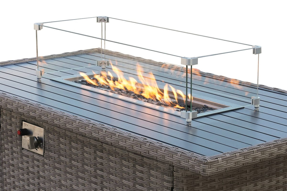We recommend a 5kg bottle as this fits inside the table, it is not included in the set. Our firepit systems are UKCA and CE certificated and manufactured using grade SUS 304 Stainless Steel ensuring they are weatherproof and made to the highest quality.