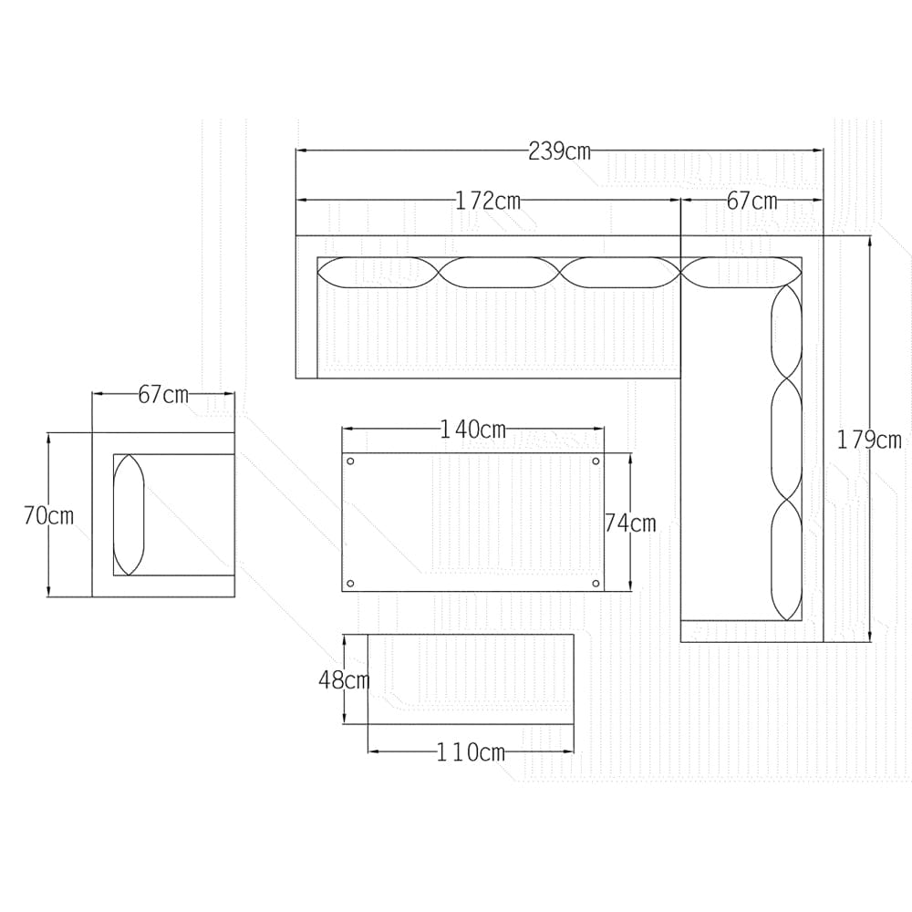 1xArmchair : 70cm x 67cm x 74cm