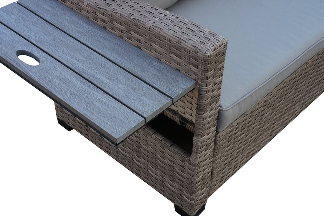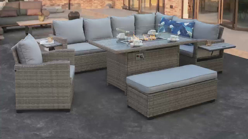 Galle Right Facing 9 Seater Garden Corner Sofa Fire Pit Set With Foldable Side Tables