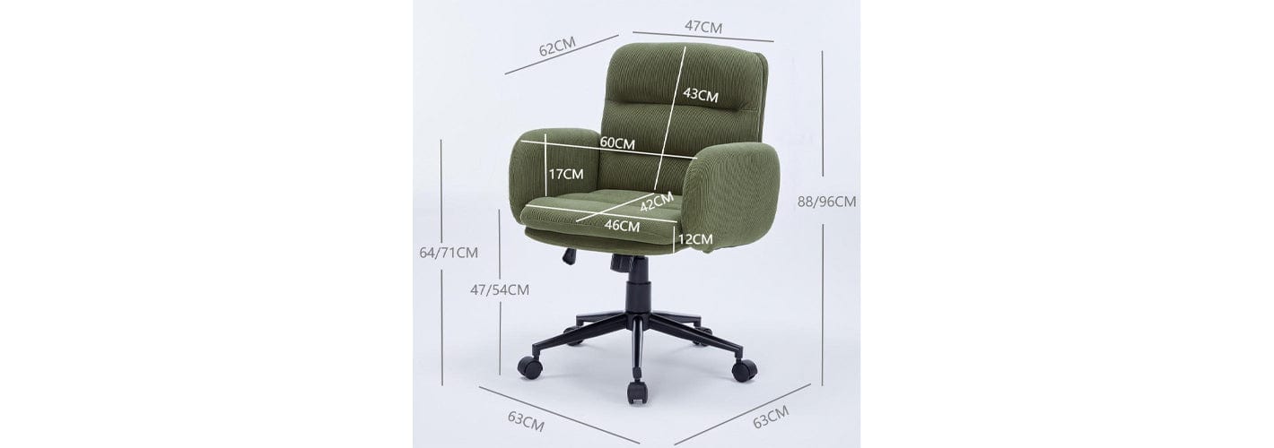This chair is a true showstopper, designed to make your workspace feel vibrant and inviting. Imagine sinking into the wonderfully soft and textured green corduroy fabric. It's the perfect combination of bold style and smart, user-friendly design, ready to brighten up any room!