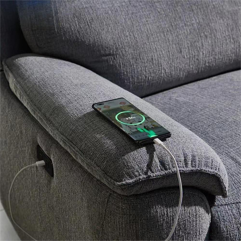 Grey Fabric Corner Recliner Sofa Lounge Set With USB charger