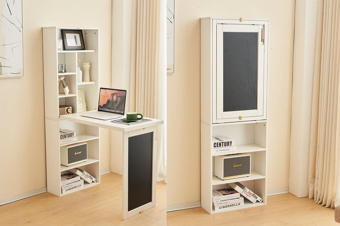 Heritage Foldable Wooden Convertible Office Desk Bookshelf With Blackboard