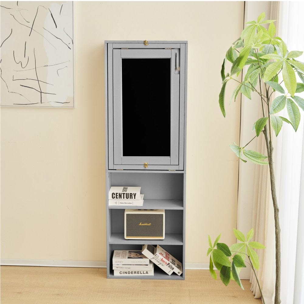 - The convenient blackboard attached to the top shelf is perfect for writing down memos or notes.