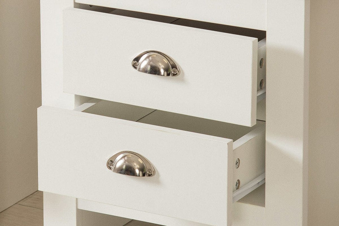 A stylish shaker-inspired furniture set that is perfect for kitting out a bedroom in a first-class style. The sleek lines, soft white, grey or blue foiled finish with oak tops and brushed steel handles create a sophisticated impression. Ideal for a room where understated elegance is the goal. It will brighten and complement the desired room.