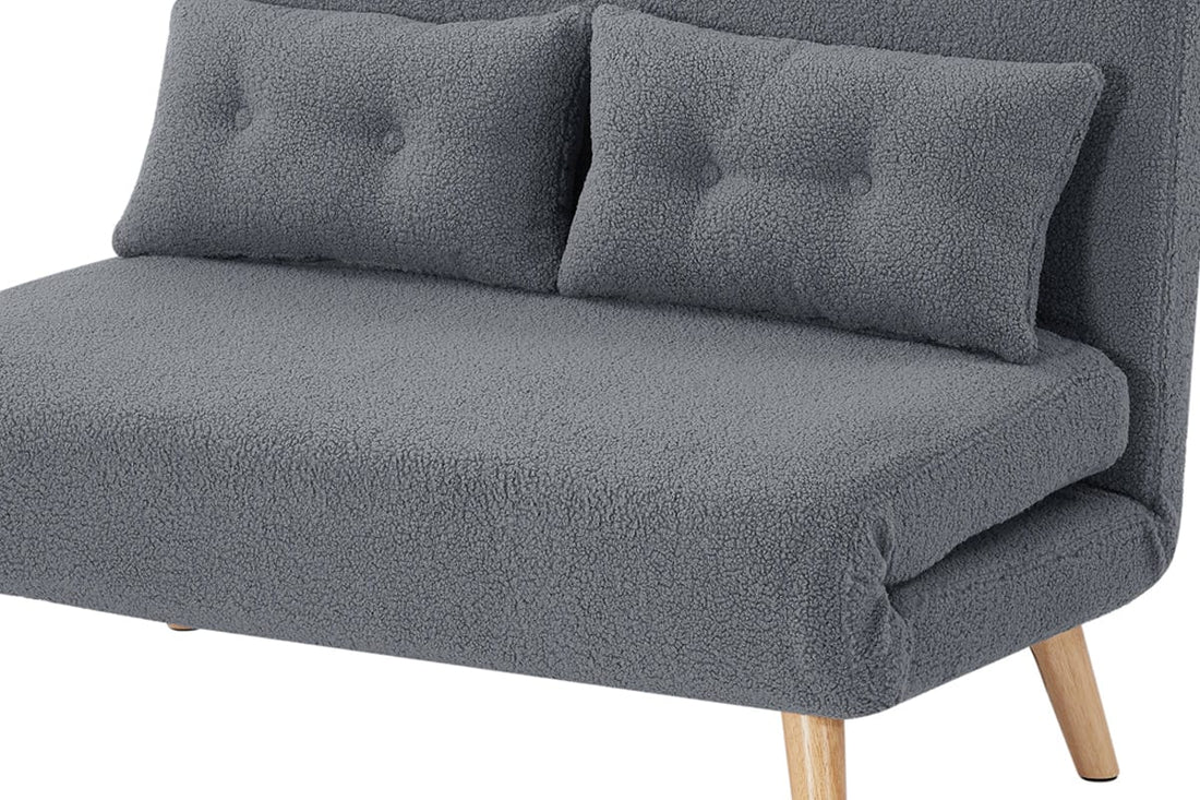 Jola Grey Boucle Foldable Sofa Bed With Wooden Legs And Pillow
