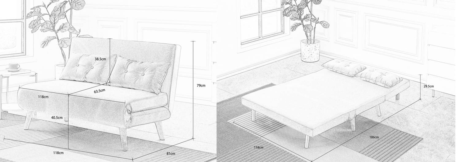 If you're looking for a versatile and stylish piece of furniture that can as both a sofa and a bed, then look no further than the Jola. This beautiful sofa bed is upholstered in luxurious velvet fabric and features a foldable design that makes it easy to convert from a sofa to a bed and vice versa. With two toss pillows for added comfort and style, the compact size of this sofabed makes it perfect for small spaces. Whether you're looking for extra seating in your living room or a guest bed for overnight visitors, the Jola is sure to become your new favourite piece of furniture.