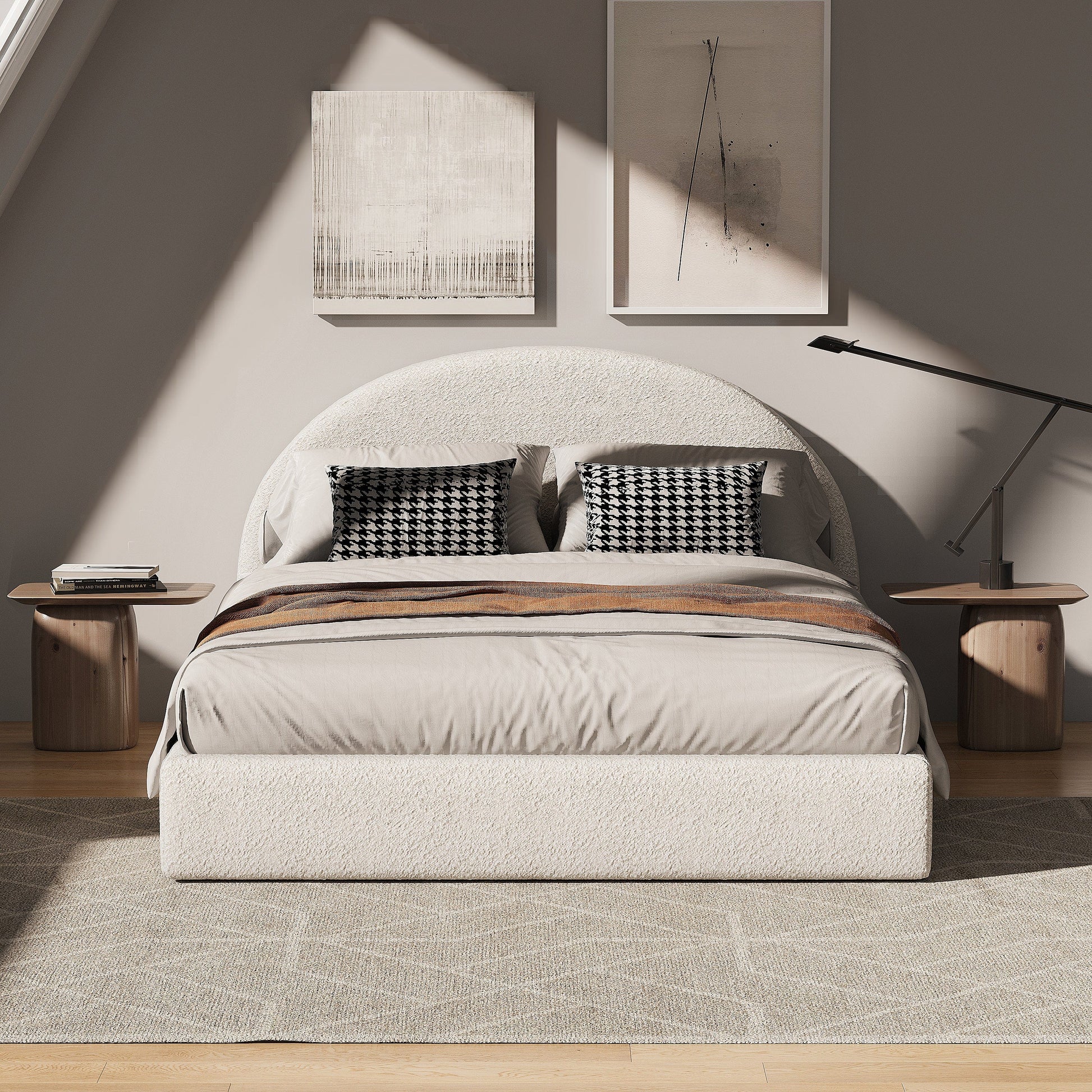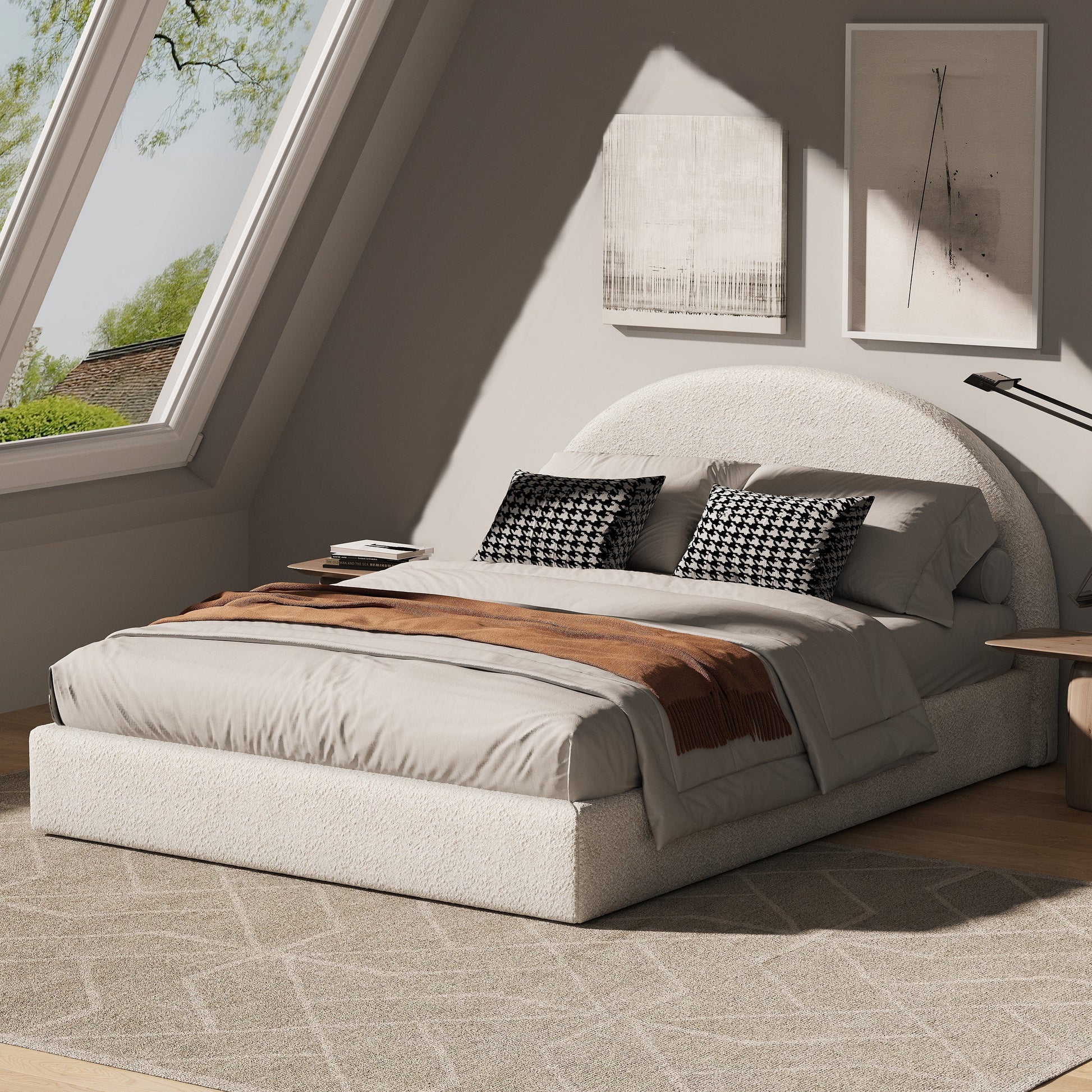 Marshmuff Soft Frame Boucle Bed Frame With Curved Headboard King Bed or Double Bed