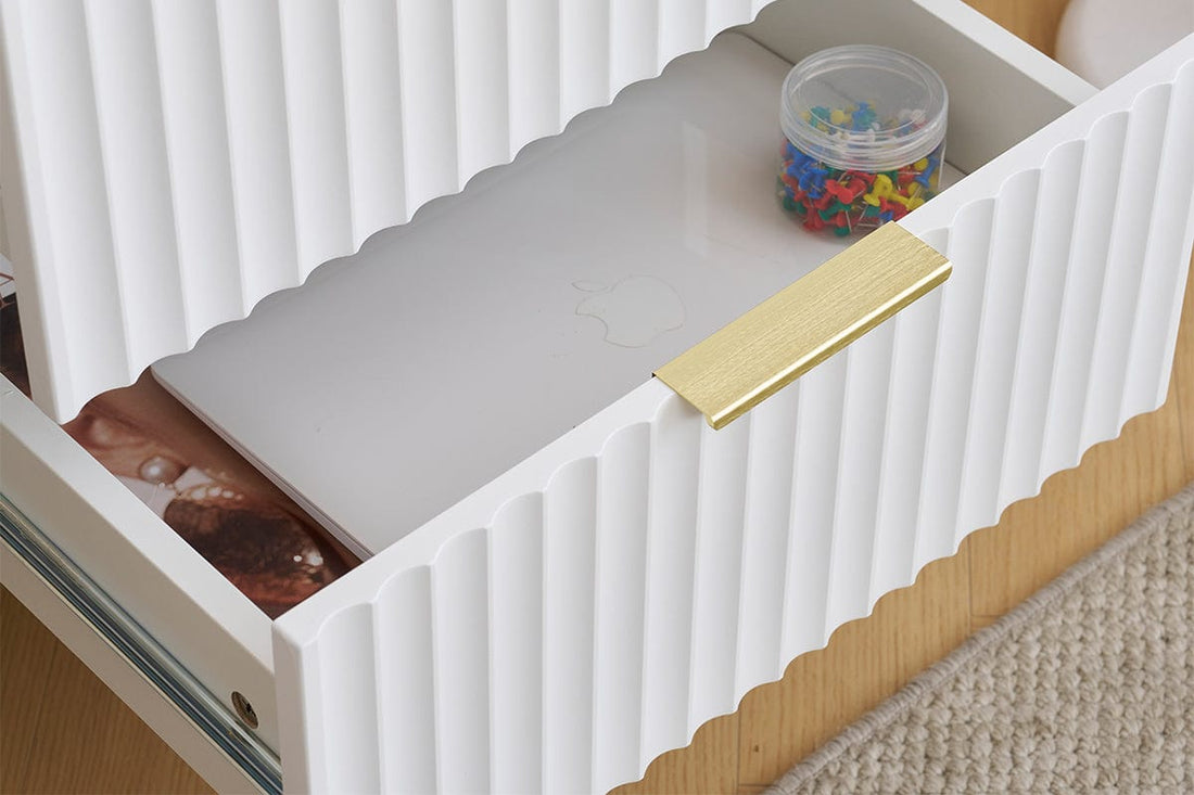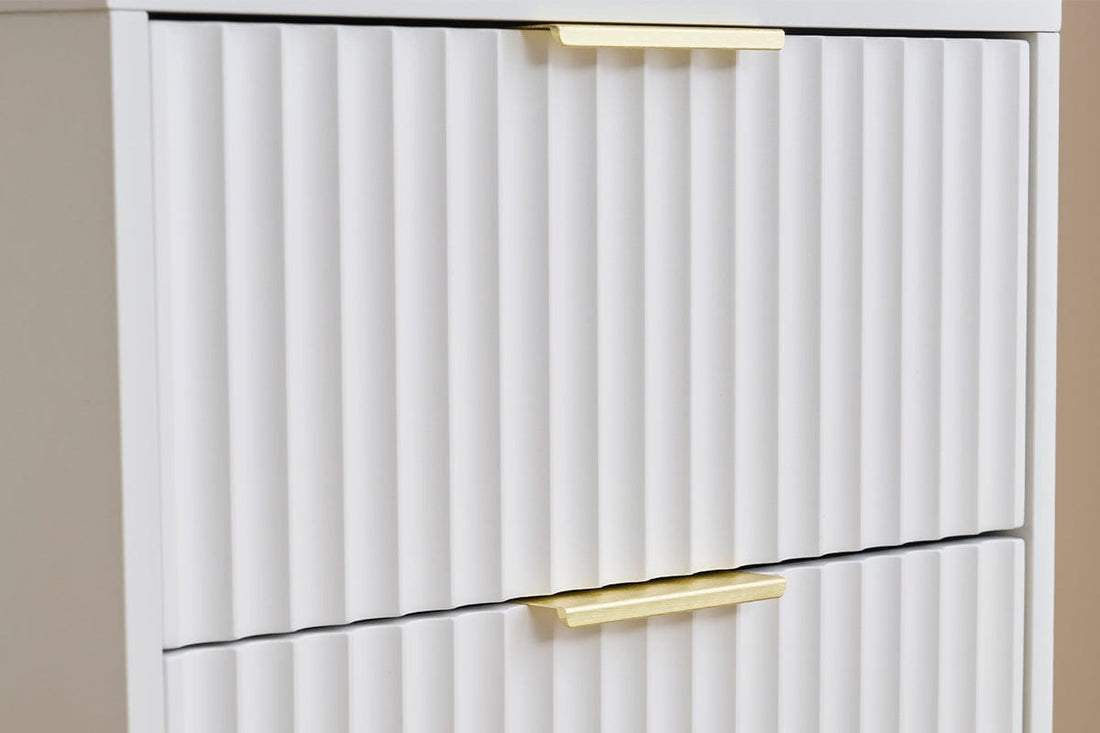 Ridged 2 Drawers Storage Bedside Table in White—the perfect blend of style and functionality!