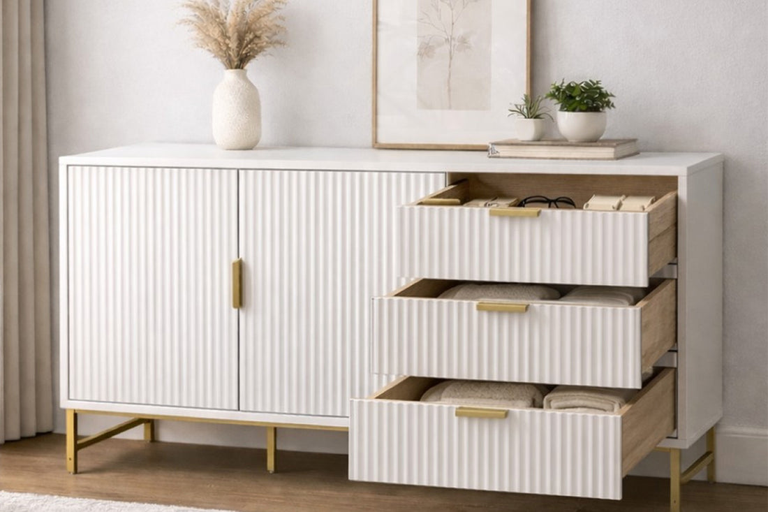 Perfect for tableware, linens, electronics, or everyday essentials, this sideboard keeps your home effortlessly tidy while elevating your décor.