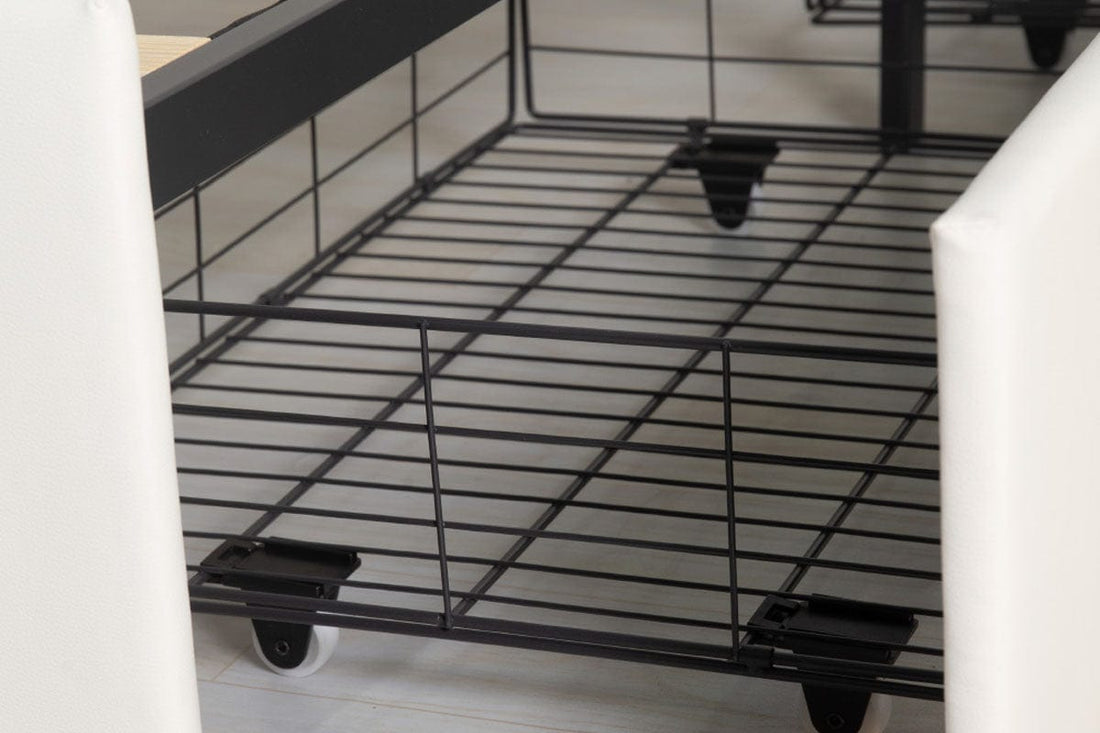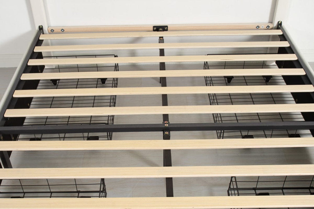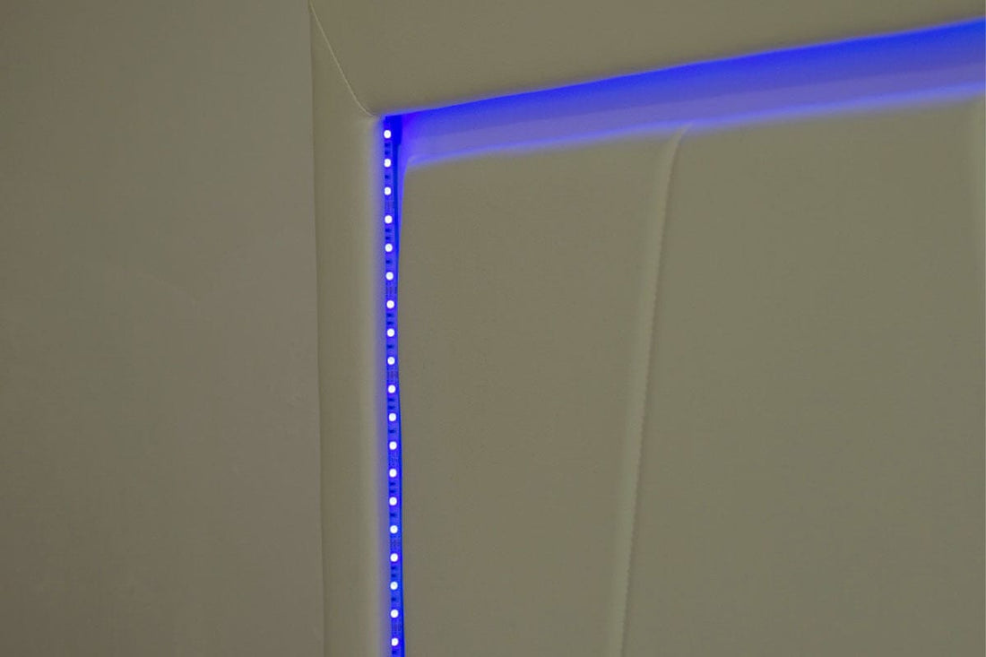 Modern White PU Bed Frame with 4 Drawers Storage and LED Light Head Board and Charging Ports
