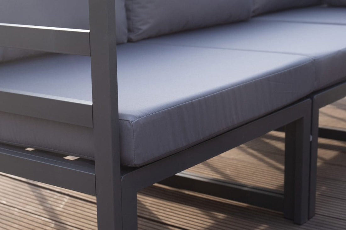 This stunning set combines style, comfort, and functionality to give your outdoor space the wow factor. The spacious 8-seater sofa ensures there's room for everyone, while the handy stools provide extra seating or can double as footrests. Crafted from durable, weather-resistant aluminium, this set is built to handle the elements, so you can enjoy it season after season. Plus, the cushions are plush and inviting, ensuring you can sink into total comfort during those long evenings. Whether you're hosting a barbecue or indulging in some peaceful downtime, this set is your go-to for unforgettable outdoor living.