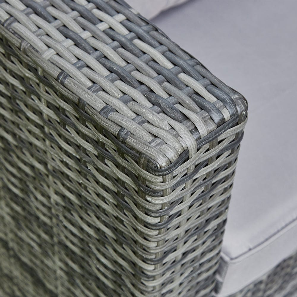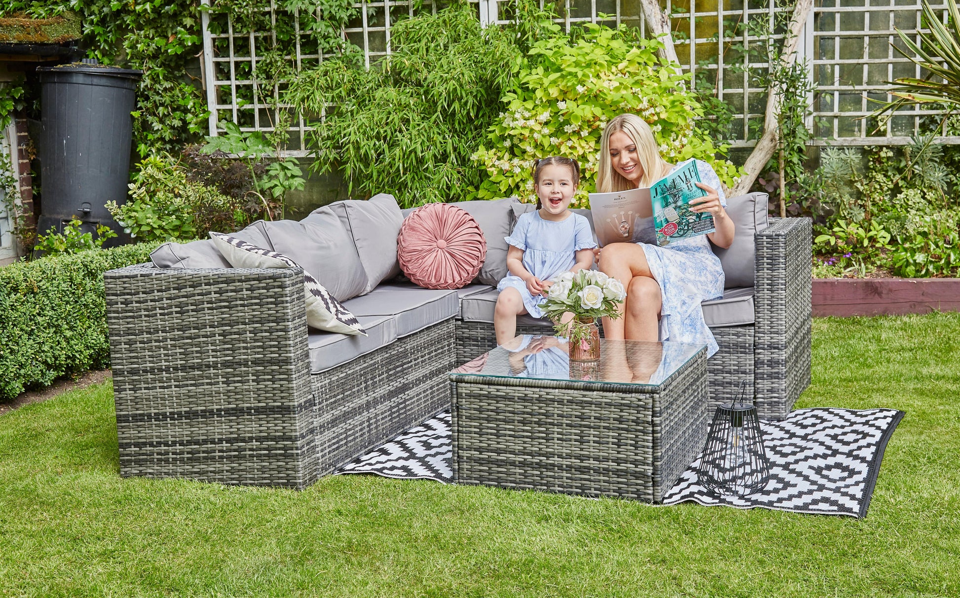 Made from hard-wearing PE scratching rattan, this Grey rattan garden furniture set guarantees year-round comfort and relaxation for all the family. The British weather is unpredictable at the best of times, but this garden sofa is designed to stand up to the sun, rain, snow and wind. Each seat features washable seat and back cushions that offer posture support and comfort all in one. This Yakoe rattan 5-seater garden furniture collection also comes with a glass-topped coffee table that remains stable on any type of surface. The gorgeous L-shape creates an inviting corner that maximises space in the garden, where it works wonderfully as a terrace or patio set.