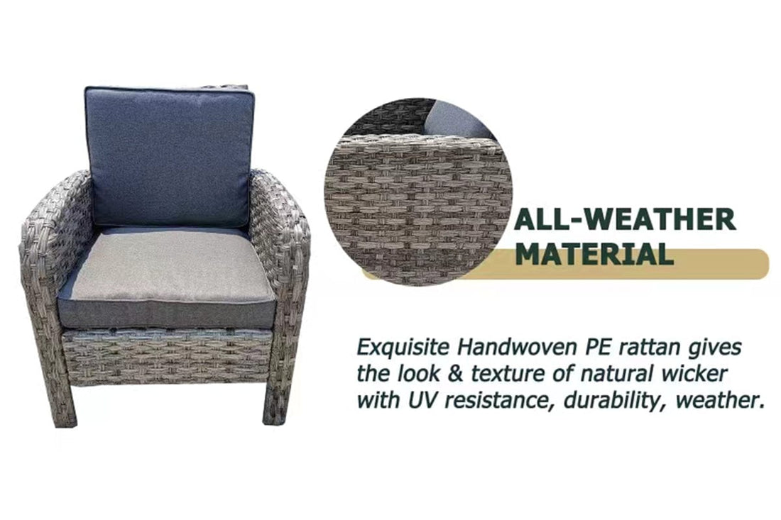 Built to withstand the elements, our high-quality rattan ensures long-lasting beauty and durability. Rain or shine, your garden set stays in pristine condition! The sleek dining table features a tempered glass top, providing a chic and sturdy surface for all your alfresco meals and drinks. Sink into luxurious, deep seating designed for ultimate relaxation. Whether you are hosting a garden party or enjoying a quiet evening, comfort is guaranteed.