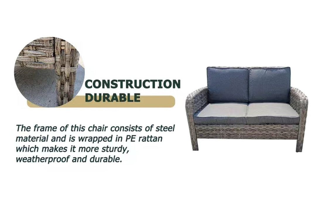 Outdoor Rattan Garden Furniture 6 Seater Sofa Dining Set In Grey