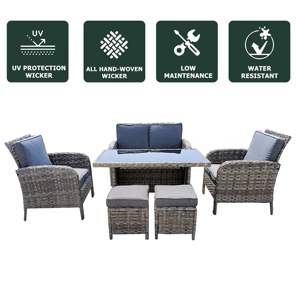 Ready to elevate your garden gatherings? Discover the perfect blend of comfort, style, and durability with our Outdoor Rattan Garden Furniture 6-Seater Sofa Dining Set! This set isn't just furniture—it's an invitation to unwind and enjoy the outdoors like never before.